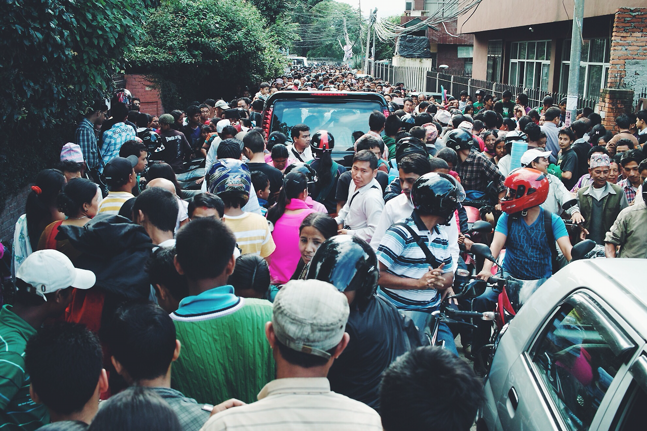 자, 이렇게 네팔로 오기 전 책과 다큐멘터리, 그리고 네팔에 사시는 분들에게 전해 들은 이 정보들이 맞는지 직접 발로 뛰며 알아볼 차례다. 네팔은 한참 우기이다. 옷과 신이 젖지 않도록 단단히 채비를 하고 거리로 나가 본다. 거리에 발을 내밀 수 없을 만큼 사람들이 가득하다. 무슨 축제라도 벌어진 걸까? 알 수 없다. 분명한 것은 어제의 여행객이었던 우리는 오늘부터 카트만두의 거리를 걷는 행인이다.
