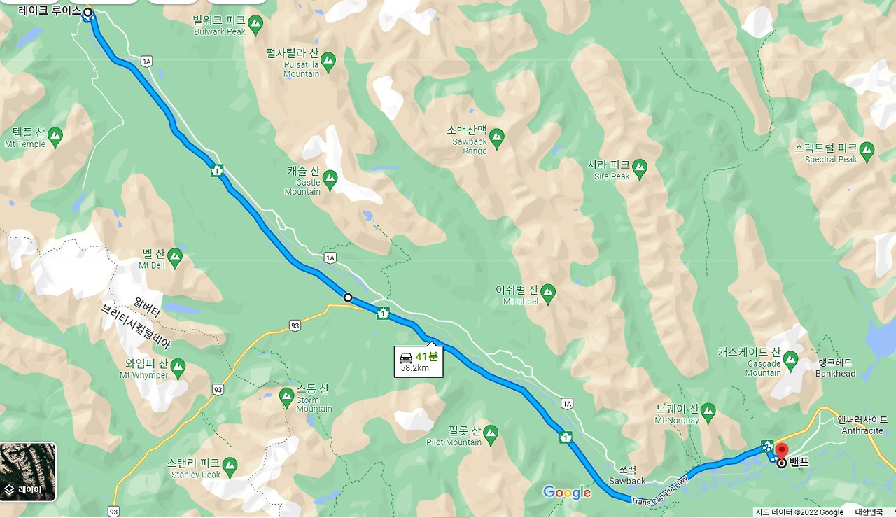 레이크 루이스에서 밴프까지는 트랜스캐나다 하이웨이나 보우 밸리 파크웨이를 통해 이동할 수 있다.