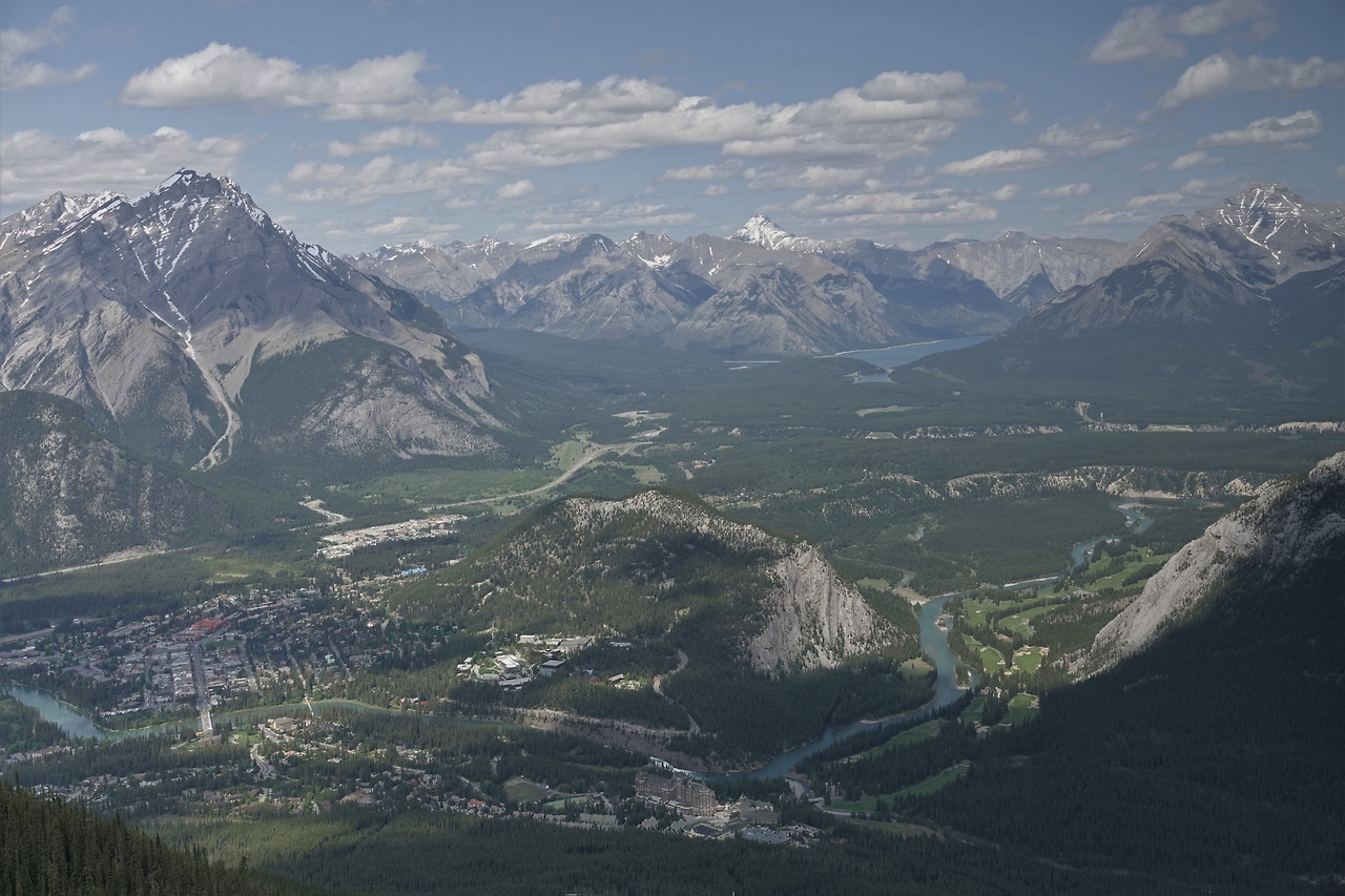 밴프 곤돌라 상층부 스카이 비스트로 인근 전망대에서 바라본 밴프와 보우 강의 모습