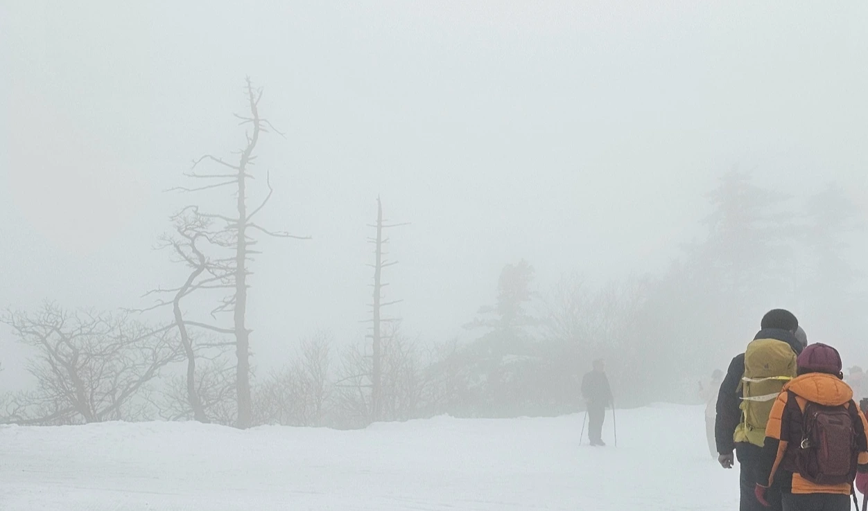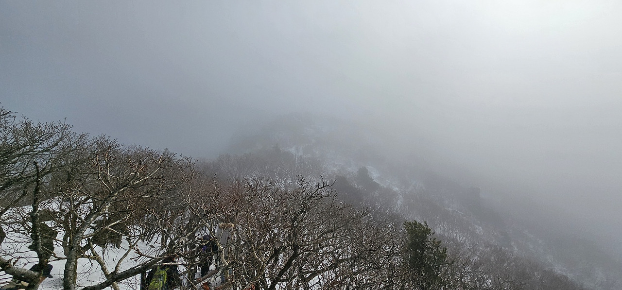 곤돌라에서 하차 후 향적봉까지 눈에 덮인 길을 가는 중에도 안개는 쉽사리 거칠 기미를 보이지 않았다.