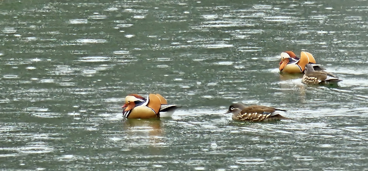 천은사 주변 저수지에 원앙새 두 쌍이 유유지적 노닐고 있었다.