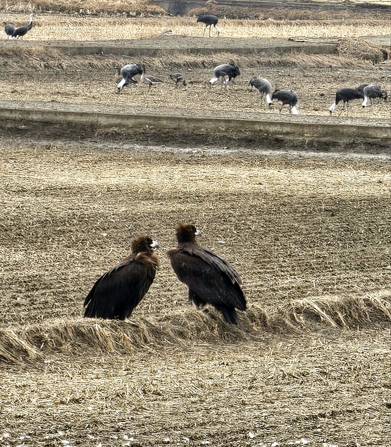 공원에 들어서니 서울대공원 조류관에서나 들을 법한 소리가 멀리서 들려오기 시작하였다. 가까이 다가가니 갈대인지 억새로 만든 것인지 모를 기나긴 벽을 세워 중간중간 새들에게 방해되지 않고 사람들이 새들을 가까이에서 볼 수 있도록 벽높이를 낮춘 공간들이 있었다. 그곳을 통해 추수한 들판을 볼 수 있었는데 곳곳에 기러기와 흑두루미 그리고 심지어 독수리도 몇 마리 보였다. 독수리들은 옆에 유유자적 먹이활동을 하는 새들을 바라보며 무슨 생각을 하고 있을까? 검독수리 같은 일부 강력한 사냥능력을 가진 몇몇 종류 외에 일반적으로 독수리들은 죽은 사체를 주로 먹이로 한다고 하는데 세월을 낚고 있을까?