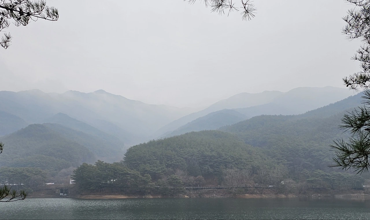 멋진 풍경을 더 안락하게 진한 커피 한잔 하며 즐기고 싶었지만 그런 환경이 되지 못했고 센 바람과 옷 속까지 파고드는 추위에 우린 항복하다시피 하행길로 접어들 수밖에 없었다. 내려오는 길내내 기아 1단~2단의 엔진 브레이크를 기본으로 하고 브레이크 페달을 살짝살짝 밟으며 내려왔는데, 올라올 때 보다 더 가파르게 보여 천은사까지 내려오는 내내 마음을 놓을 수 없었다. 우린 천은사 주차장에 하차하여 주변 저수지 둘레길을 걸으며 못다 한 산책을 하기로 하였다. 나무데크로 둘레길을 잘 설치해 놓은 지라 도시 속을 걷듯 지리산 자락을 밟아 보았다.