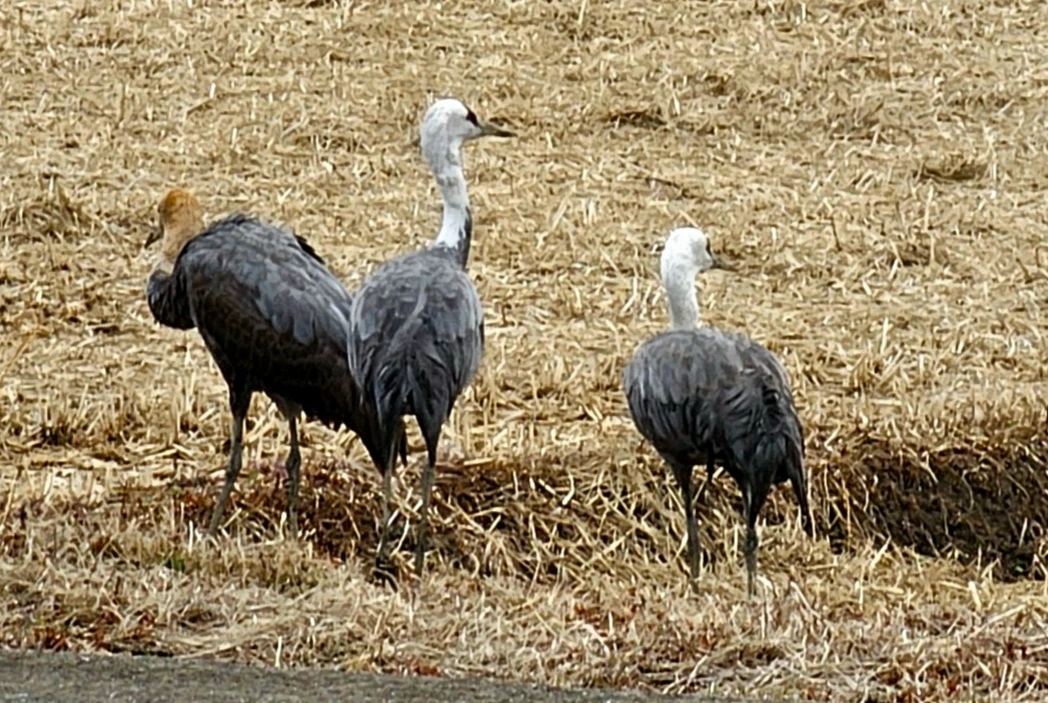 흑두루미 몇 마리가 먹이 활동을 하고 있다. 떨어진 벼이삭을 먹는 모양이다.