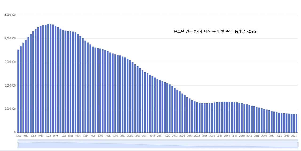 첫째 요인은 수요의 급감에서 찾을 수 있다. 저출산으로 인한 소아연령층이 급감하고 있는 것이다. 하기 통계청의 데이터를 보면 우리나라의 유소년인구는 특히 2000년대를 들어서면서 급감하고 있다. 이러한 연령층 감소로 인해 소아과는 급기야 전공과 이름도 소아청소년과로 개명하기에 이른다. 하지만 어린아이에 특성에 따른 의료수가설정이 적기에 이루어지지 못하고 의료수가 결정구조는 총점고정형태로 한쪽을 늘리면 한쪽이 줄어들어야 하는 비합리적 원칙을 갖고 있어 좀처럼 불합리한 수가를 개선할 방법을 찾지 못하고, 아니면 찾지 못하게끔 구조를 만들어 놓고 있어 왔고, 다른 전문과목들은 비급여항목을 만들어 나가며 나름대로 의료기관 경영의 출구를 만들어가는 동안 소아청소년과는 할 수 있는 일이 진료하던 아이들이 청소년 연령층이 되더라도 지속적으로 진료하겠다는 방법밖에는 찾아내지 못하였다.