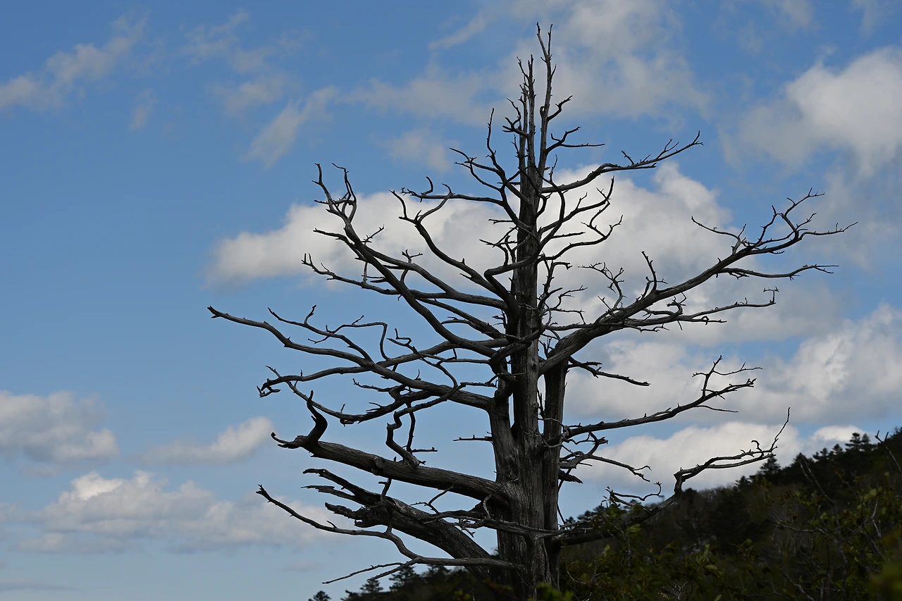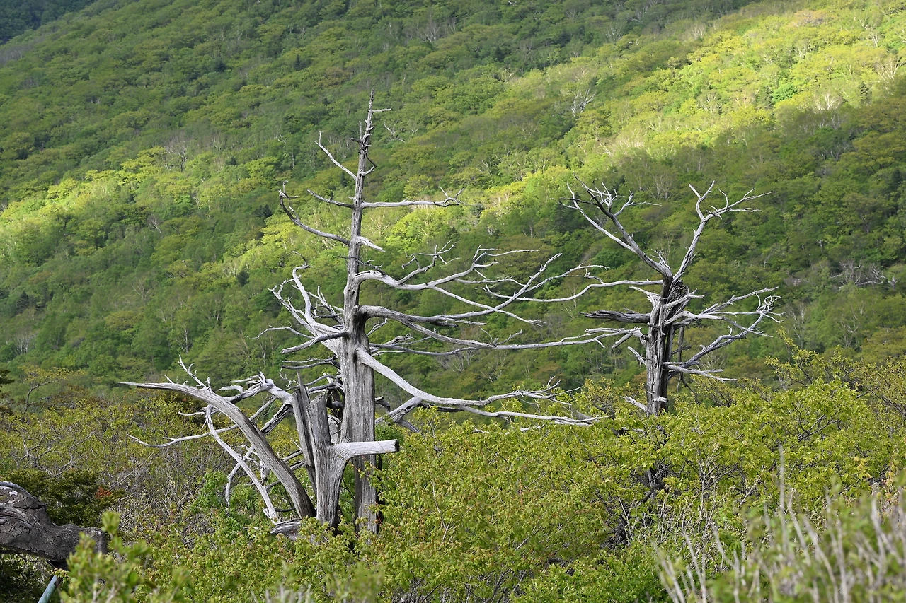 정상부근 고사목이 묘한 운치를 더하여 준다. 한 때 이산을 누렸을 나무들이 었을텐데