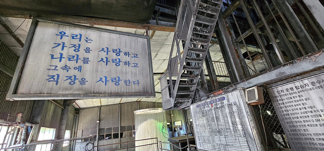 점심 식사 후 우린 커피를 마시며 쉴 겸 삼탄아트마인에 들르기로 하였다. 하이원 리조트에 묵는 여정으로 올 때마다 한 번은 꼭 들리게 되는 곳인데 우연히 들렸다가 묘한 매력이 있어 올 때마다 빠지지 않고 방문하게 되었다. 석탄 탄광이 폐광하면서 광업이 흥왕 하였던 시기의 사회 모습을 남기고 기억하도록 일종의 전시공간이면서 카페로 운영되는 곳인데 이곳에 들르면 과거 광부들의 애환이 곳곳에 자연스럽게 묻어 나와 보는 사람으로 하여금 마음에 묘한 추억, 광산과 관계없는 삶을 살았지만, 과거로의 회귀 같은 느낌을 주며 당시의 삶에 애잔함을 느끼게 해 준다.