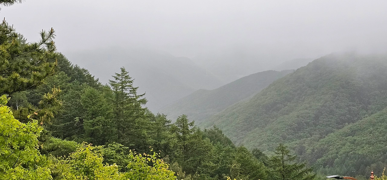 점심 식사 후 호텔에 도착했을 때 높은 곳에 위치해서인지 구름이 안개가 되어 주변을 휩싸고 있었고 바람도 제법 부니 안개가 바람에 흘러가며 신비로움을 더해주었다. 장시간에 걸친 운전과 수목원에서의 강행군으로 우린 하루의 일과를 여기서 마무리하였는데 내일 오전에 비 소식이 있어 조금 염려가 되었다.