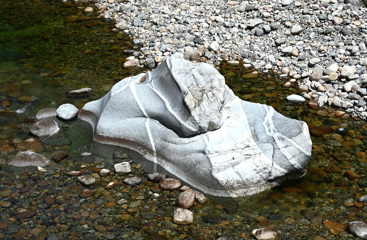 길 왼쪽에 계곡을 두고 걷는데 흰색 계통의 바위들과 에메랄드빛 맑디 맑은 계곡물은 보는 이로 하여금 경탄을 금할 수 없게 만드는데, 이 풍경의 기본 요소는 바위들의 모양과 주변 나무들의 달라지는 모습에 따라 다소 형태를 달리할 뿐, 교향곡의 주제 멜로디가 다양한 표현들로 오케스트라에 의해 반복되어 연주되는 것 같이 이어지고 있었다.