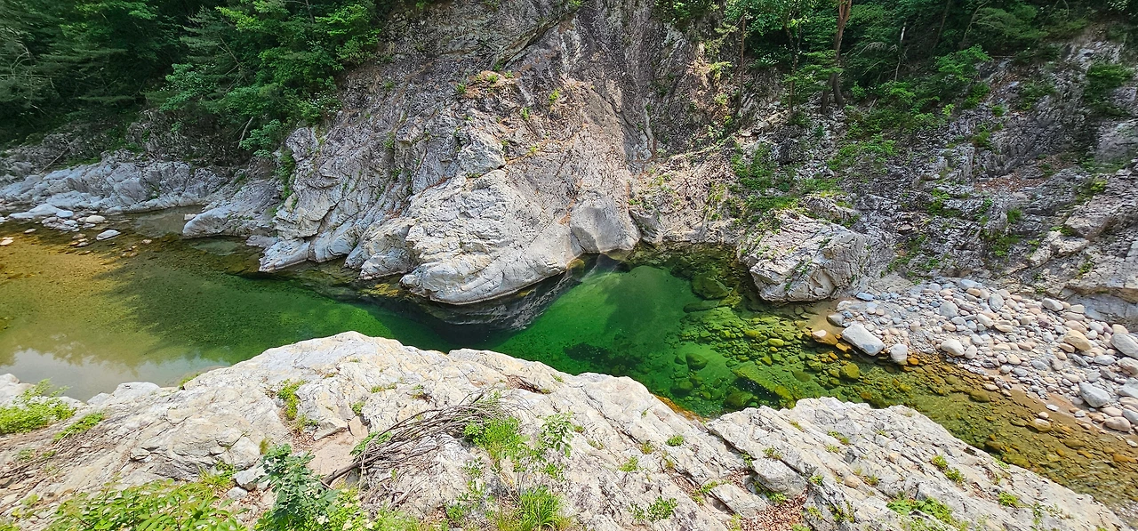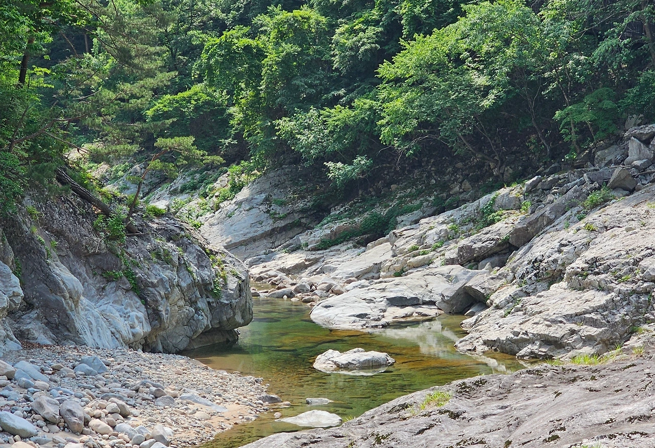 초입부터 계곡은 심상치 않은 풍경을 보여주는데 무엇보다도 에메랄드빛 투명한 계곡물은 신비로운 느낌을 자아내고 있었다.