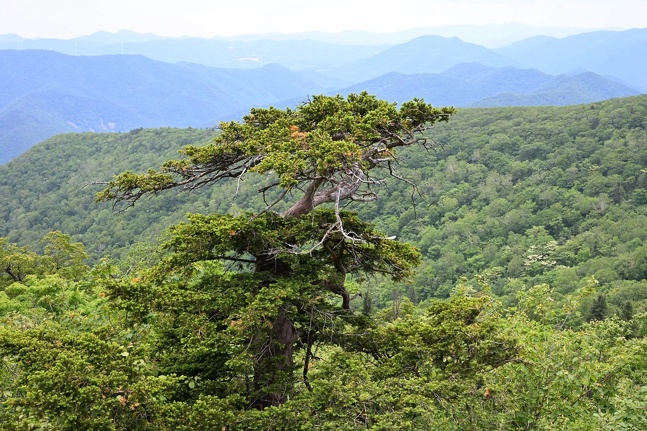천년을 훌쩍 넘는 초고령의 주목들이 여기저기 자라고 있었고 잘 정비된 데크길은 그 주목들을 차례차례 만날 수 있게 잘 정비되어 있었다. 한 시간 넘게 내려갔다 올라오는 길은 편안하게 발왕산 주변 풍경과 다양한 나무들을 볼 수 있게 해 주었는데, 산목련 군락지가 중간중간 있어 순수하고 청초한 자태를 아낌없이 보여주고 있었다.