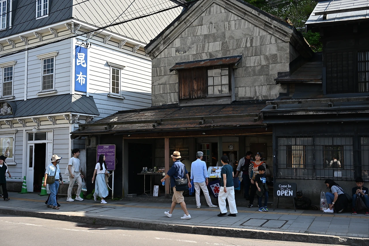 우리는 운하는 한번 흘깃 보고 인사만 한 후 이어지는 일정과 따가운 햇빛으로 후식과 커피를 하러 서둘러 움직였는데 옛 거리와 오르골 건물을 향하여 가던 중에 기타이치홀 (北一ホール)이라는 역사를 자랑하는 음식점 겸 카페에 들어가려 했다. 들어가려니 직원이 황급히 우릴 막아서며 줄을 서라 하는데, 문 밖으로 나와보니 미처 인지하지 못했던 줄이 길게 있는 것이 아닌가!어업목조창고였던 건물이 쇠태 하면서 1901년 가스램프유리제작 시설로 사용되다가 지금은 카페, 디저트를 파는데 가스등의 아름다움과 피아노 연주 실연을하기도 해서 분위기가 좋아 인기가 있는 곳이라 하는데 아무리 좋아도 긴 줄을 보니 그렇게 까진 들어가고 싶진 않았다. 우린 차선책으로 르타오(LeTAO) 케이크점으로 갔다. 북해도는 낙농업이 유명하고 양질의 우유와 그 파생 상품들을 자랑스러워한다는데, 호주에서는 이곳 케이크를 수입해서 고가로 팔리기도 한다는 치즈케이크가 맛이 뛰어난 곳이라 아이들이 그곳으로 안내하였다.