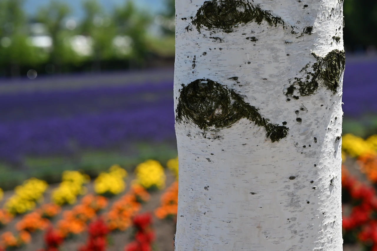 라벤더 밭 사이로 원색의 꽃들과 하이얀 자작나무가 아름다운 풍경을 더 자아내고 있다.