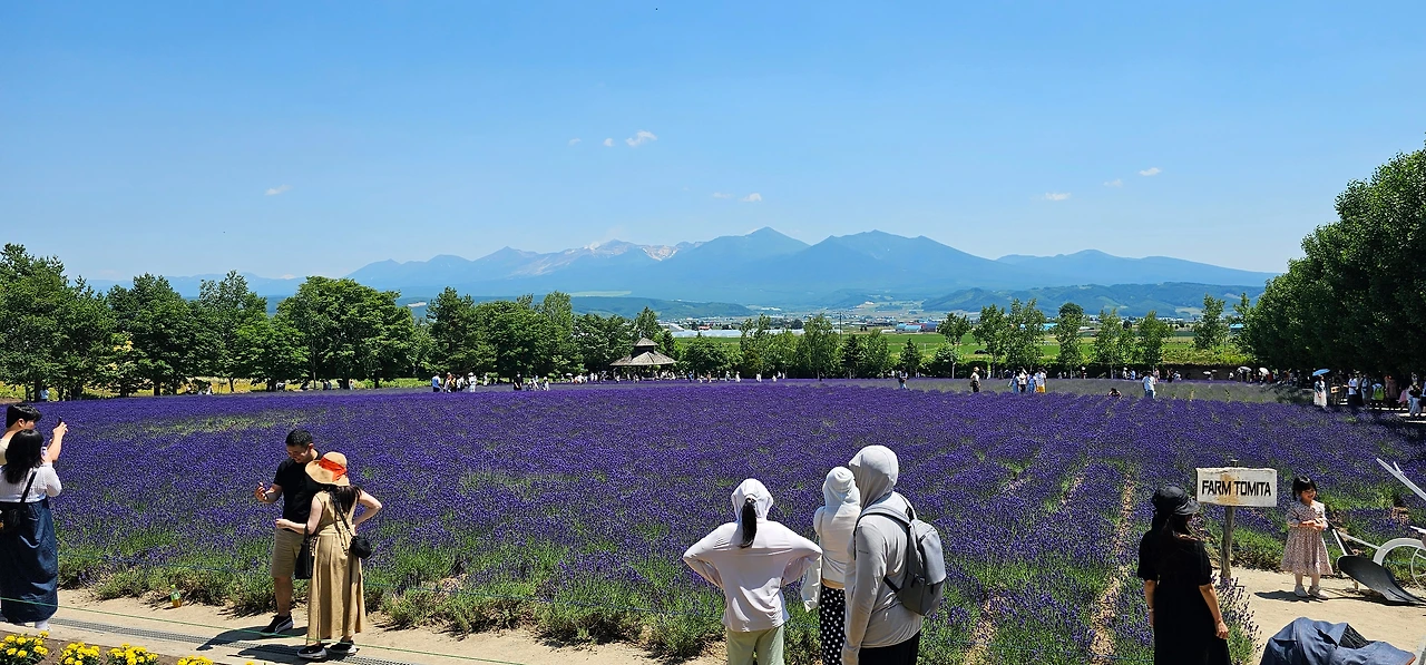 팜 토미타는 6월 말에서 8월 초까지 피는 보라색 라벤더 밭의 아름다운 모습으로 관광객들이 이 시기 특히 많이 모이는데 우리가 방문한 시기가 마침 개화 시기를 맞이하여 화사한 보라색 라벤더 밭과 꽃향기로 맞아 주었다.배경이 아름다울 것을 예상하여 무거운 삼각대를 지니고 다녔는데 드디어 빛을 발할 순간이었다. 하지만 쉴 새 없이 오가는 인파와 여기저기 사진 찍는 사람들로 인해 우린 눈치를 살피며 황급히 몇 장의 가족사진 밖에 찍을 수 없었다. 그래도 이것이 어딘가? 항상 가족사진에 빠지기만 했던 내가 이번엔 몇 장 들어갔다는 사실이 위안을 해주었다.