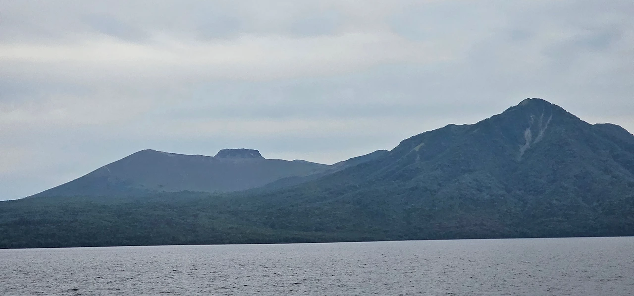 시코츠호수 주변으로 산 봉우리들이 둘러 싸 있었는데 우측 사진에서 처럼 성산 일출봉같이생긴 봉우리도 보였다.