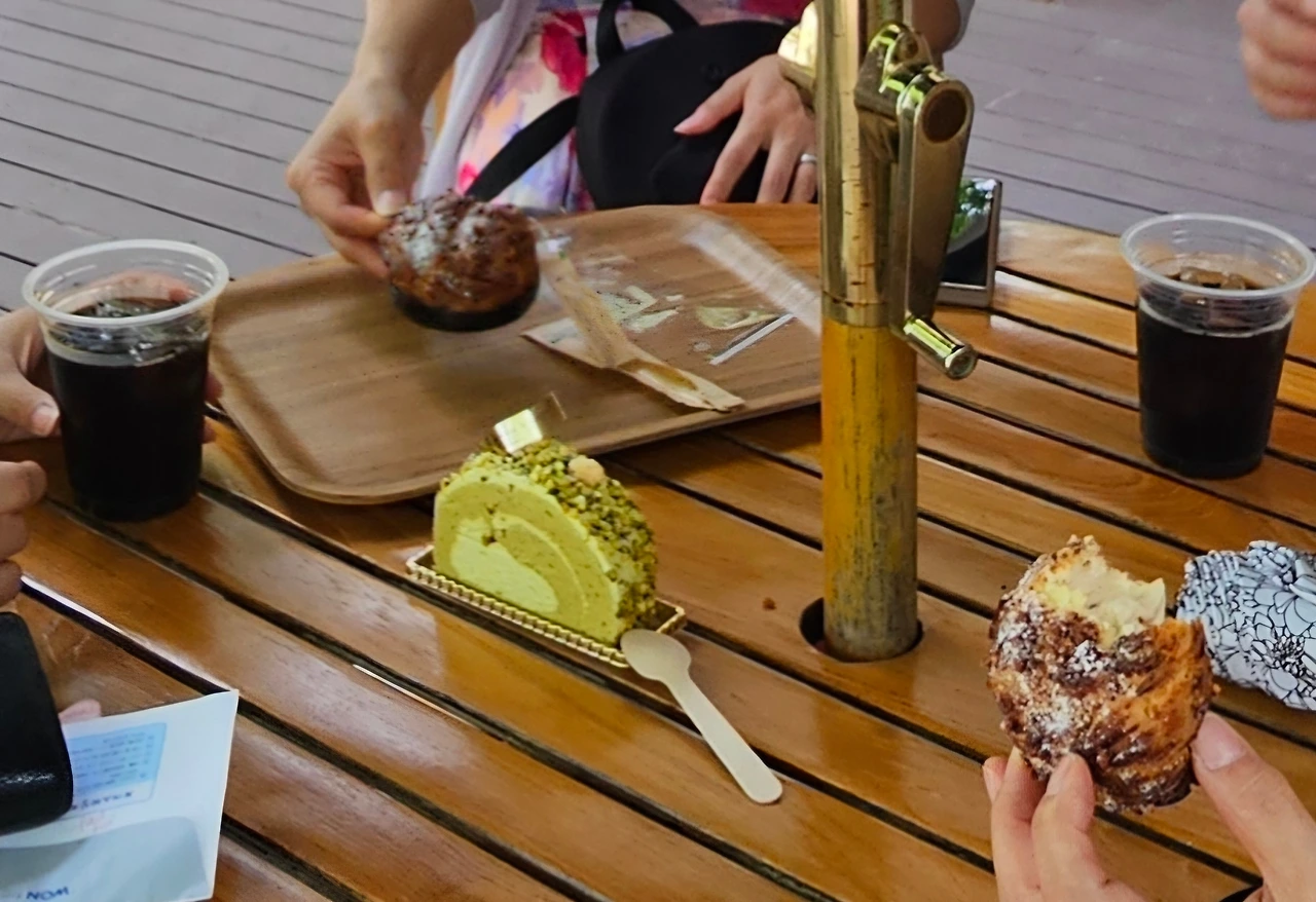 식사 후 미즈노 우타에 있는 디저트 카페 파티셰 랩에서 먹음직한 아몬드와 캐러멜맛이 연하게 풍기는 슈크림이 가득들어 있고 겉은 바삭바삭한 슈와 작은 케이크 한 조각과 커피를 마시며 휴식의 시간을 보내니 일본의 여정이 끝나가고 있었다.