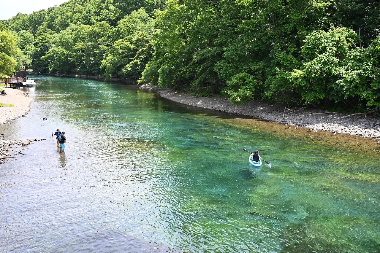 철교 아래로 흐른 강의 물은 맑고 투명하고 초록과 푸른 다양한 색이 어우러져 청량감을 더해 주었는데 그 강위로 작은 보트나 패들보드를 타는 사람들로 활기가 넘쳤다. 한 중년 남성은 연신 물속에 빠지면서도 몇 시간씩 도전하고 있었는데 그분의 노력에 찬사를 보냈다.