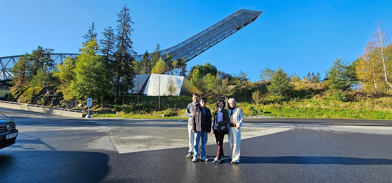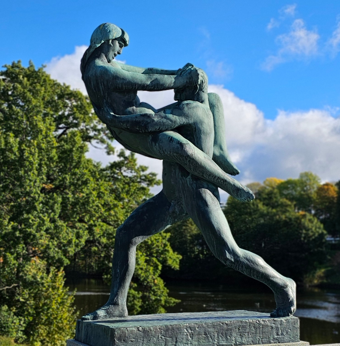 오슬로의 4박 모두 한 호텔에서 묵었다. 자정 넘어 도착하였지만 우린 아침 일찍 눈이 떠져 7시 30분경 조식을 먹고 S형제와 오슬로 시내로 가 비겔란 조각 공원을 방문하였다. 호텔에서 시내로 내려가는 길에는 스키점프대가 있었는데 스키가 노르웨이 국가 스포츠인만큼 주요 도시마다 이런 스키 점프대가 있고 이런 시설을 세워주지 않으면 지역 주민들이 몹시 섭섭해한다고 한다. 길가 곳곳에 rulleski라고 부르는 롤러스키를 타는 사람들을 흔히 볼 수 있었고 그들만을 위한 도로도 따로 만들어 놓은 것도 있었다. 아름다운 풍경을 볼 수 있는 곳이 있어 길 가다 잠시 차를 세우고 길 옆쪽에 연하여 난 포장도로로 진입했는데 저 멀리서 현지인이 뭐라고 소리를 쳤다. 이 길을 걸으면 안 된다는 것이었는데 롤러 스키를 타는 전용도로였다. 잠시 후 우리 옆을 질주하듯 한 사람이 롤러스키를 타고 쏜 살 같이 내려갔다. 우린 몹시 위협감을 느낄 수밖에 없었지만 스키활동에 노르웨이 사람들이 진심이라는 생각은 들었다.