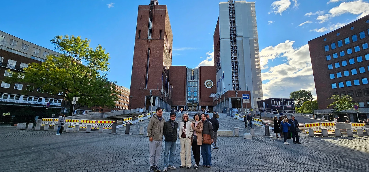 오후엔 시청에 갔다. 노벨 평화상이 수여되는 로비도 둘러보았는데 노벨상은 스웨덴에서 수여되지만 평화상만큼은 노벨의 유언에 따라 노르웨이에서 수여된다고 한다. 시청을 둘러본 후 현지 마트에 잠깐 들러 부족한 식재료 몇을 구입하고 S형제의 집으로 가서 S형제의 가족과 함께 저녁 식사를 하였다. 대구탕에 연어요리였는데 S형제는 요리하는 것이 취미인지라 이번 여행 내내 수석 셰프로서 다양한 음식을 제공해 주었다. 외국 여행 가면 항상 이삼일만 지나도 힘들어하던 나의 아내는 이번엔 그런 불편함이 조금도 없이 여정을 마칠 수 있었다. 물론 여기서 갈 때 여행가방 하나에는 먹을 것만 가득 가지고 갔고 S형제가 스웨덴에서 사 온 고기 여러 덩이와 현지의 마트에서 장만한 신선한 식재료 덕분도 있었지만 일등 공신은 S형제였다.