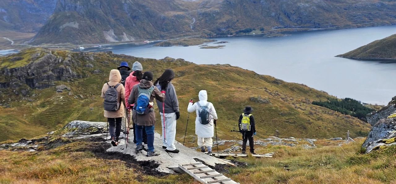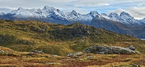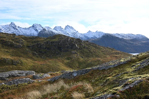 10월 초의 로포텐 제도는 황금빛으로 산자락과 들이 덮였다. 풀과 이끼가 가을이 되면서 황금빛이 도는 싯누런 색과 남아 있는 초록이 뒤섞여 묘한 배경을 이루고 있었고 작은 관목들이 자라고 있어 툰드라지형처럼보였다. 트레일 출발지점까지 가는 내내 차창 밖 풍경은 어딜 봐도 아름답게 전개되었는데 갑자기 바다가 나타났다가 갑자기 눈 덮인 높이 치솟은 산이 튀어나오더니 다시 황금빛 싯누런 풀과 이끼가 섞인 들판과 산자락이 펼쳐지곤 하였다.