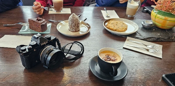 내려가는 길에도 두고 가기 아까운 풍경들이 여전히 펼쳐졌지만 오로라 볼 때 했던 J의 말처럼 맘 속에 뇌리에 담아두고 아쉬운 산행을 마무리하였다. 숨 가쁜 일정을 마치고 내려왔지만 두세 시경밖에 되지 않아 우린 바닷가 카페에 가서 처음으로 커피와 다과를 하기로 하였다. 한국에서 이런 여행을 하였다면 매일 들렸을지도 모를 카페를 노르웨이 온 지 6일 만에 들리는 셈이었다. 높은 물가에 우린 식사도 다 해서 먹고카페도 들리지 않았지만, 그리고 눈에 띄는 카페도 사실 별로 없었지만, 힘든 여정을 마친 우리는 우리 몸에게 다소의 보상을 해주기로 한 것이다. 커피와 달콤한 디저트 그런 것 말이다.