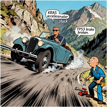 그 기전 중 한 가지를 예를 들어 보자. Ras는 세포 증식 신호 경로에서 일종의 마스터 스위치 역할을 한다. 정상 세포에서는 신호가 있을 때만 잠시 켜지고, 신호가 사라지면 곧바로 꺼지도록 설계되어 있다. 적외선 감지 혹은 동작 감지 조명 장치를 생각해 보자. 센서에 감지된 신호가 올 때 일정기간 조명기구를 켜서 방안을 밝히는데 이 센서가 고장이 나서 어떤 움직임도 없는데 항상 불이 들어오게 하는 것과 같다고나 할까? 암세포에서는 Ras 유전자에 돌연변이가 발생하면, 이 스위치가 영구적으로 고정되어 세포는 외부 신호와 관계없이 "분열하라!"는 명령이 내려진 줄 알게 되고 세포는 끊임없이 증식하게 된다. 이러한 Ras 돌연변이는 모든 암에서 생기는 것은 아니지만 사람에서 발생하는 암의 약 30%에서 발견되며, 특히 췌장암(90%), 결장암, 폐암 등 여러 주요 암에서 핵심적인 병태 생리기전을 갖게 된다.