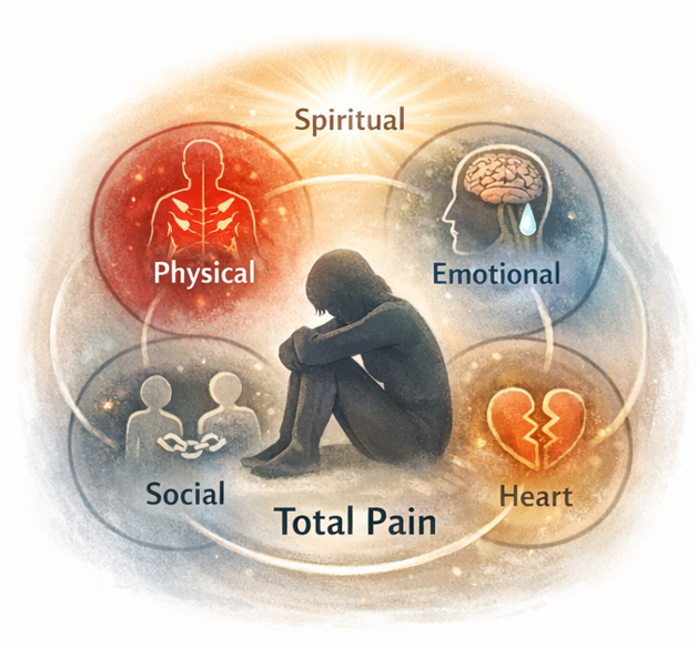 통증에 대한 불안, 우울, 수면 장애는 통증 역치를 낮추어 같은 자극도 더 극심하게 느끼게 한다. 현대 의학은 통증을 신체적 고통을 넘어 심리적·사회적·영적 고통이 결합된 '전인적 통증(total pain)'으로 정의한다. 따라서 약물 치료와 병행하여, 신경 감작을 완화하는 음악 치료, 마사지 요법, 아로마 요법, 천연 진통 물질 분비를 돕는 요가나 산책 등의 신체 활동, 그리고 명상과 같은 보조 요법을 통합적으로 시행하는 것이 현대 암성 통증 치료의 핵심 원칙이다.