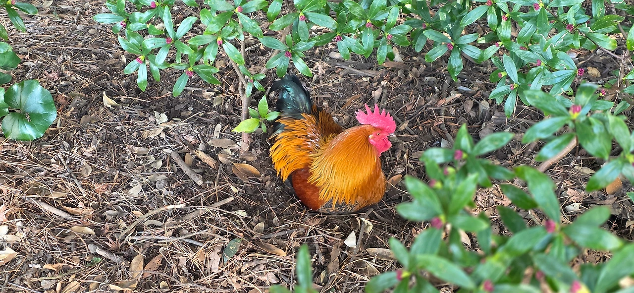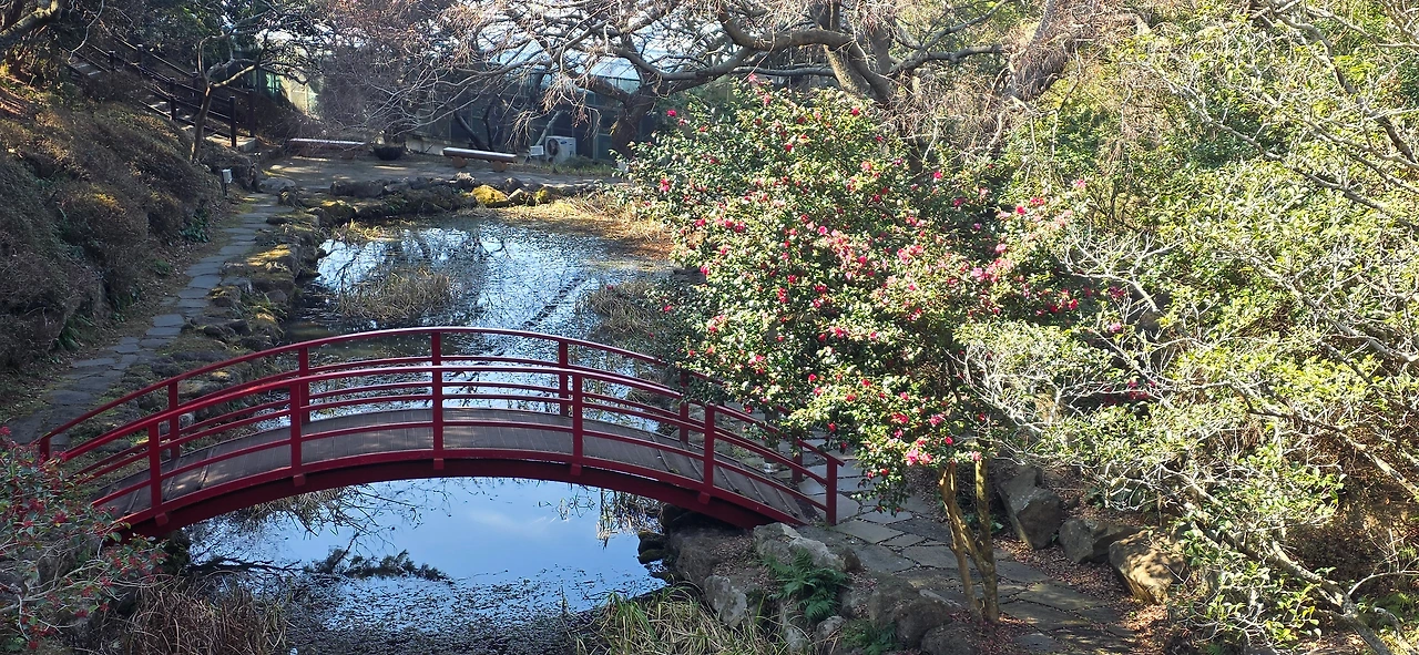 점심 식사 후 한라 수목원을 거닐었다. 들어가는 입구에 우렁찬 수탉의 울음소리가 반겨 주었다. 내어 놓고 누군가 키우는 모양이다. 여기저기 동백꽃이 자태를 드러내고 있고, 경인 지역에선 볼 수 없는 굵직한 대나무들이 군락을 이룬 곳도 있고, 광이 오름을 오르며 가볍게 산책할 곳도 있었는데 수목원은 무료로 개방되었고 주차비만 받고 있었다.