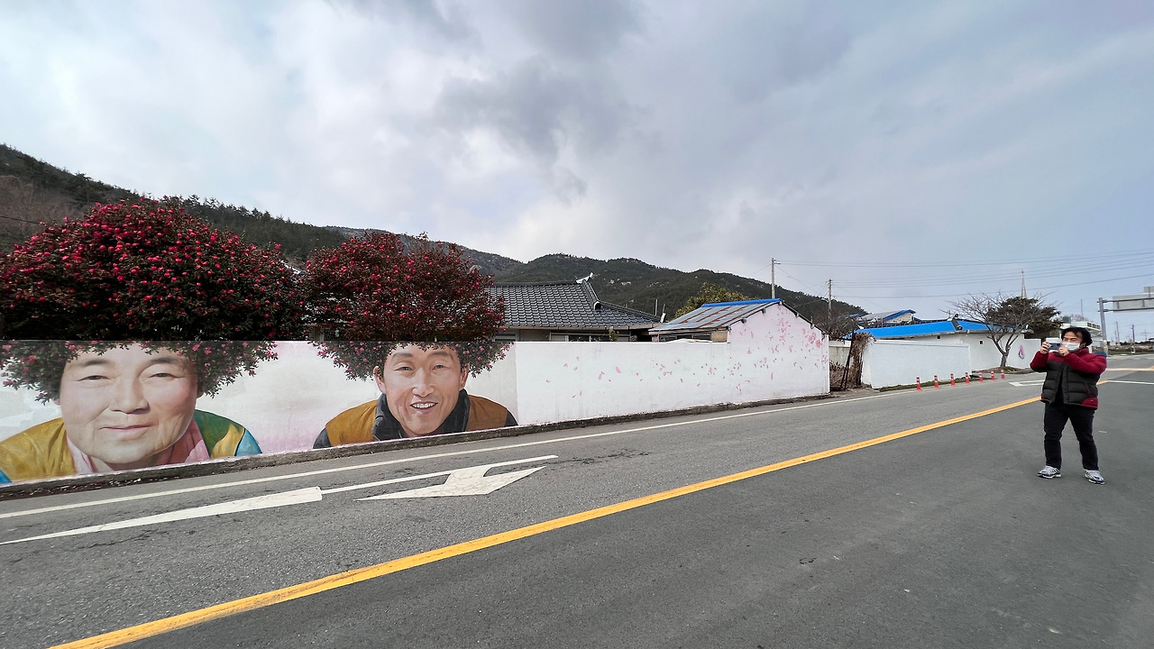 자은도에 넘어가면 전화국 벽화에 또 다른 할머니들의 벽화도 있다.