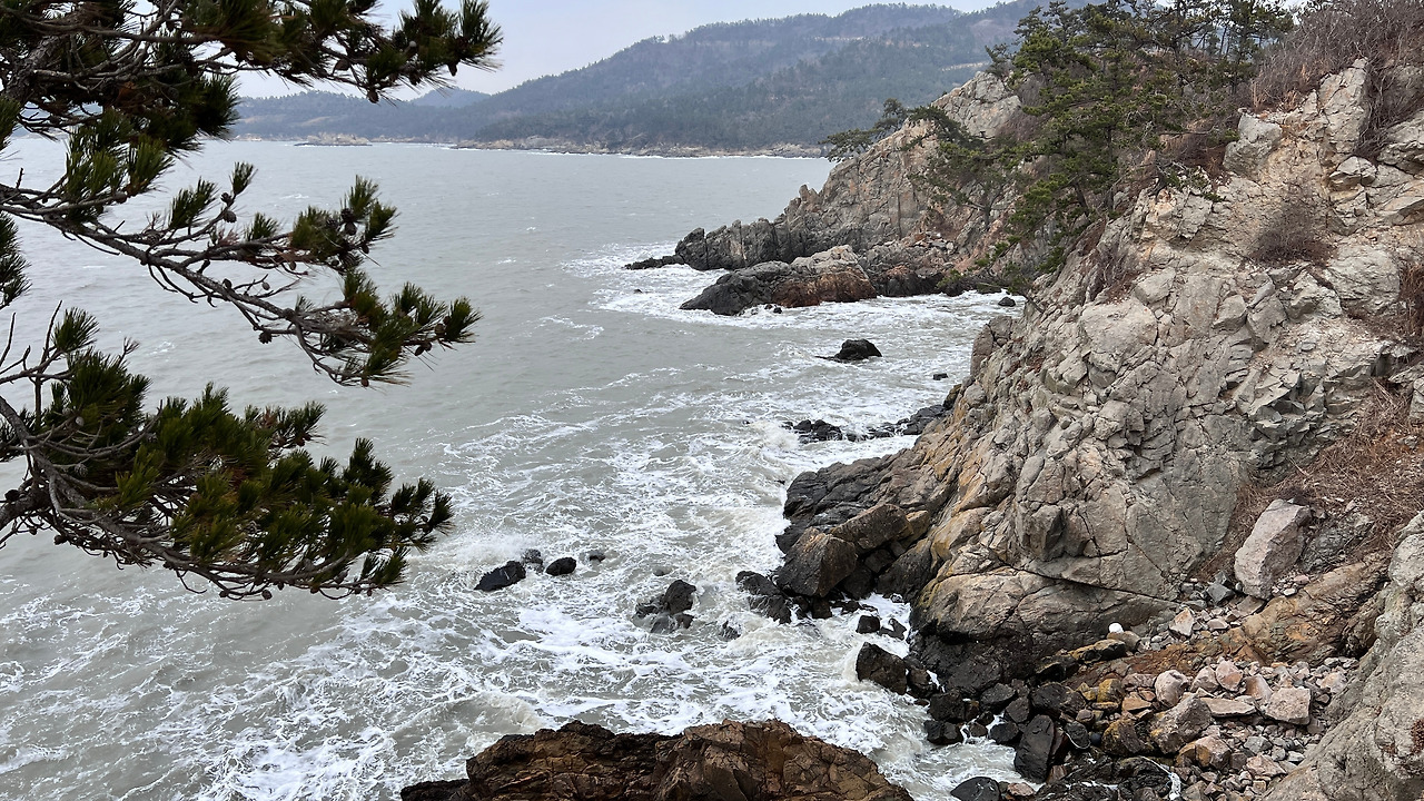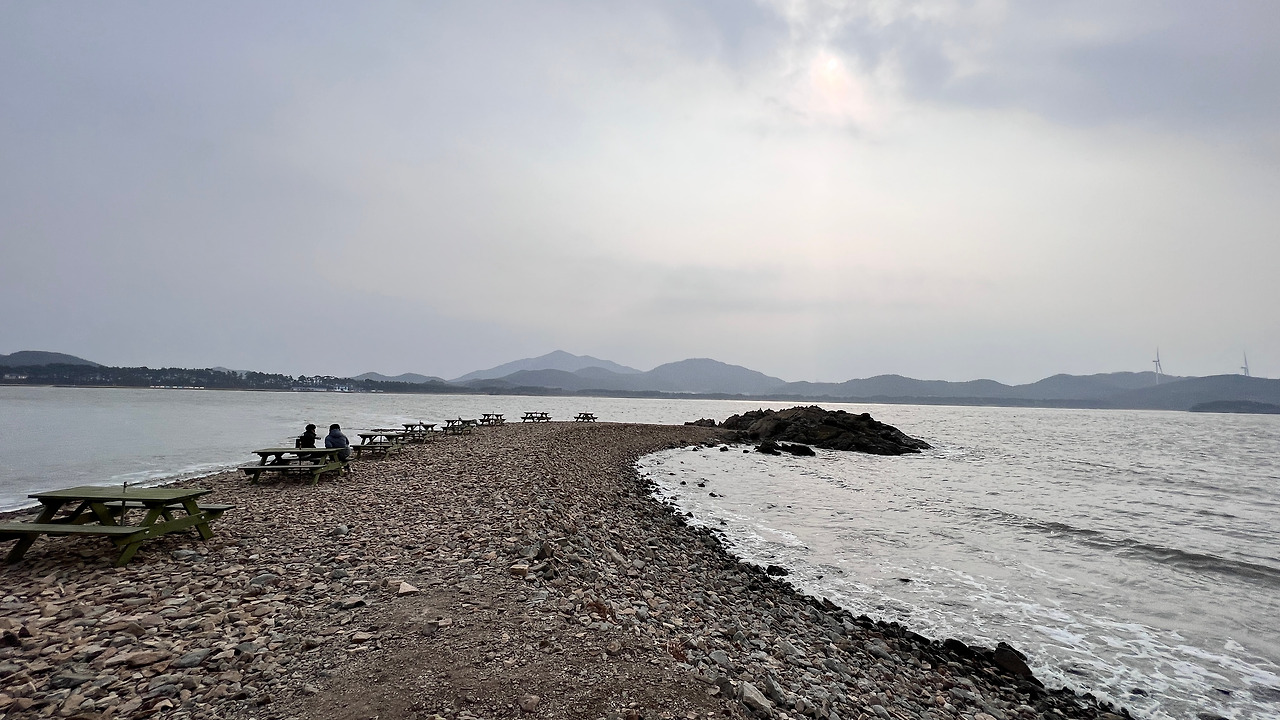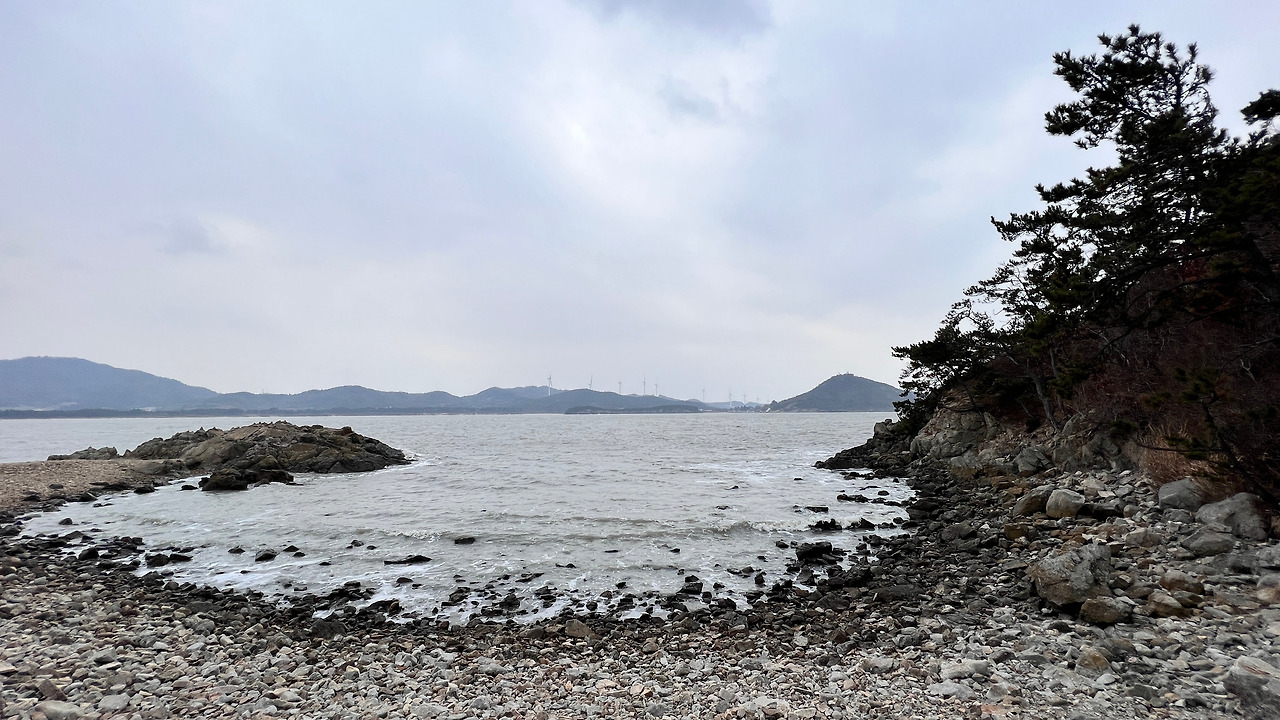자운도의 맨 오른쪽 끝에 있는 한운리 해수욕장이다. 한운(閑雲)이라는 이름이 한적한 구름이 몰려있는 곳처럼 인적 없는 이곳에 산책하기에 아주 좋겠다. 여기에 와서 산책을 하면 저절로 힐링과 더불어 썰물일 때 가운데 있는 섬까지 걸어갈 수 있다. 이 솔밭을 따라서 그램핑 시설이 잘 되어 있고 돌멩이들도 맨들 맨들해서 여름에 여기 와서 며칠을 지낼 수 있기에 좋겠다는 생각을 해본다.