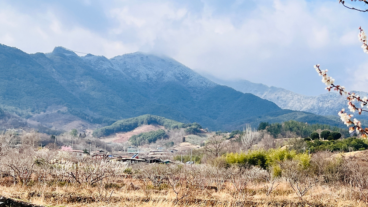 이번 여정은 광양 매화마을을 지나서 특별하게 간 곳이 윤동주의 시집을 자신의 집 마루 아래에서 숨겨서 우리가 보는 서시 등을 비롯한 시를 지금과 같이 빛을 보게 한 인물인 정병욱이가 살았던 광양 망덕포구를 다녀왔습니다. 여느 때라면 매화마을 맞은편에 있는 토지 문학관과 악양면 평사리 들판이 보이는 촬영지를 둘러보고 왔을 텐데 악양면의 매암 차밭을 다녀오는 것으로 만족했습니다. 다시 차밭을 소개하는 시간이 있으리라 생각하지만 차밭은 조용한 차를 마시던 그 풍경이 사라지고 인스타그램의 성지가 되어 버렸습니다. 그 악양마을의 높은 언덕에 눈이 쌓인 장면은 참으로 장관이었습니다. 간간이 구름사이로 나온 푸른 하늘 사이 아래에 싸락처럼 쌓인 눈덮인 산허리가 눈부시게 아름다와 보였습니다.