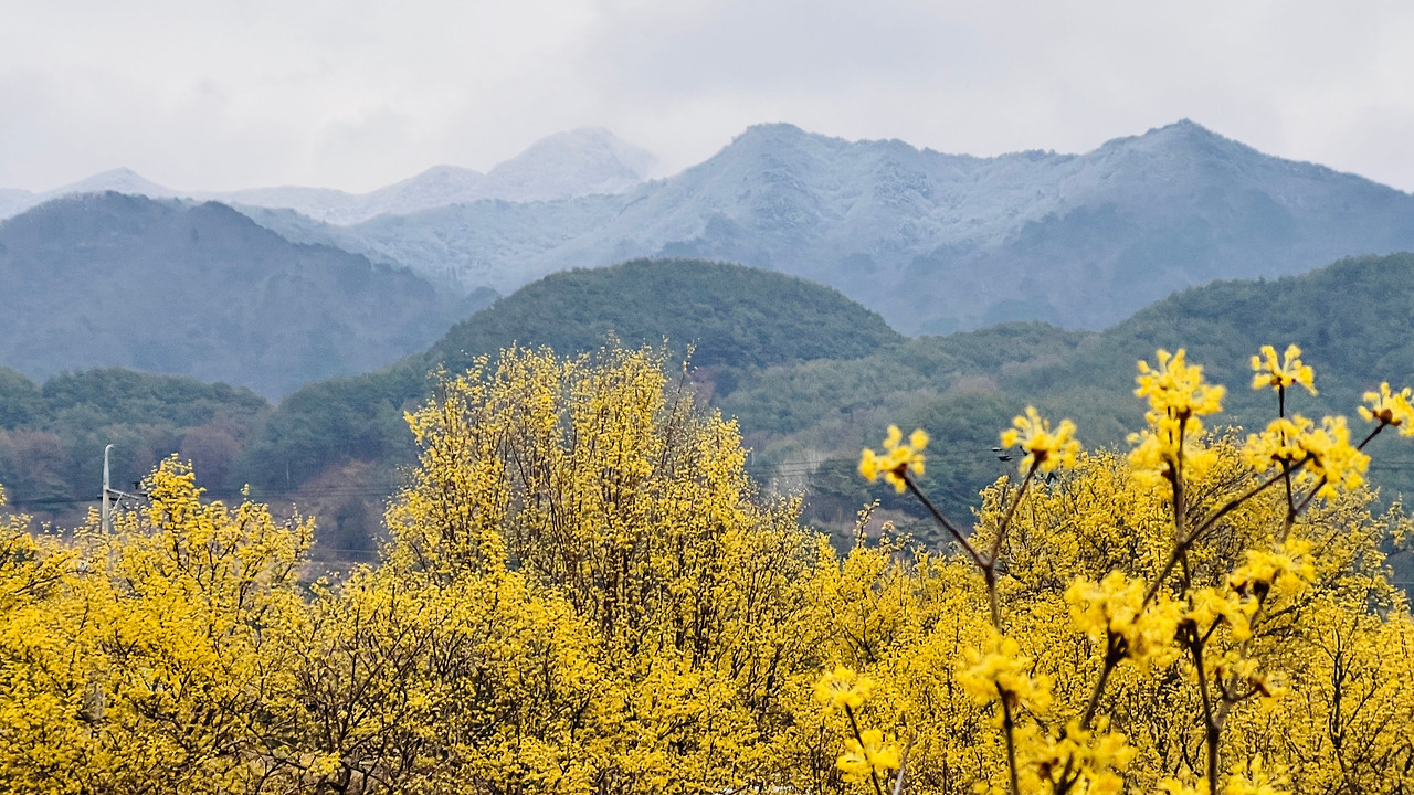 산수유꽃이 노랗게 익어가는 마을 위의 지리산 줄기에 하이얀 눈들이 쌓여 내가 여기를 해마다 왔던 이래로 이렇게 하이얀 산은 처음 보았습니다. 한참을 넋을 잃고 있다가 이렇게 해가 지고 다시 그 여운을 간직하기가 힘들었습니다. 사진으로 다시 보니 실로 대단한 날이었다는 생각이 들었습니다. 사방의 높은 산 정상 부근이 모두 하이얀 눈으로 쌓이고 내 앞에는 모두 노오랑 색으로 축제를 벌이는 풍경을 누구와 함께 갖고 싶어 졌습니다.