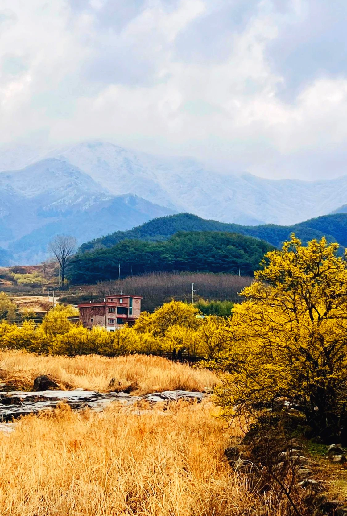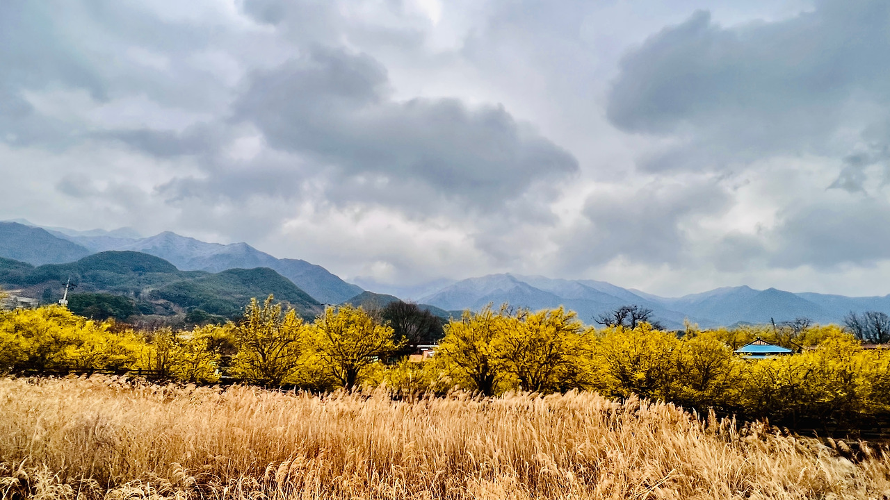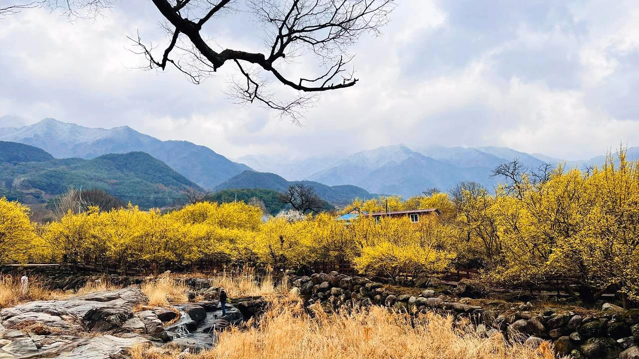 전남 구례의 산수유는 우리나라 산수유 생산량의 70%를 차지한다 합니다. 산수유마을의 이야기에 의하면 천 년 전에 중국 산둥지방의 처녀가 구례에 시집오면서 가져온 산수유가 퍼져나가면서 산수유 마을이 되었다고 전해집니다. 산동면의 산동마을과 산둥지방의 산둥은 어딘가에도 닮은 감이 오는 이유겠지요. 최근에 반곡마을 대음교의 위쪽과 아래쪽에 나무 데크를 만들어 오고 가는 사람들이 편하게 산수유길을 걸을 수 있도록 조성되어 있고 유아나 노약자에게도 걷기가 좋습니다.