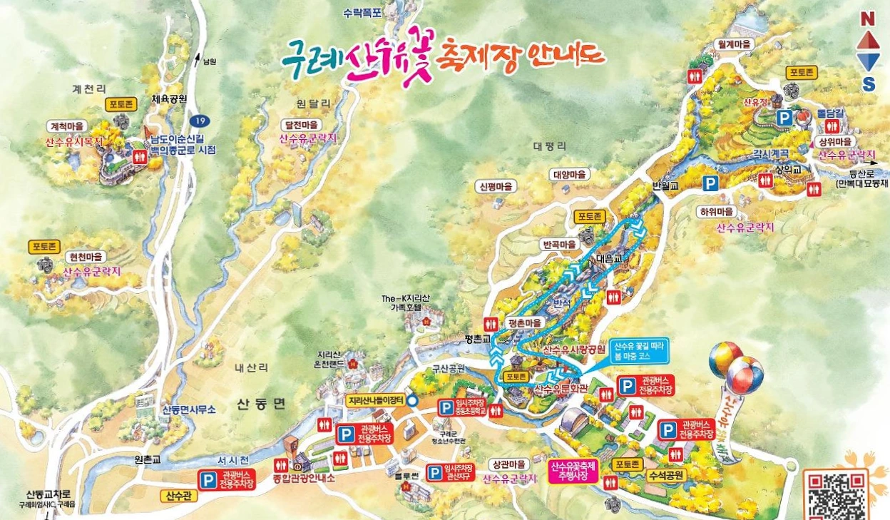 산동마을은 게르마늄 바위가 많고 계곡을 따라서 산수유가 있습니다. 또한 지리산에서 흘러 내려오는 차가운 물이 있어서 계곡을 걷다 보면 평지보다는 많이 춥고 손이 시린 편입니다. 따뜻한 재킷이나 장갑을 끼시고 걷는 것을 추천합니다. 차량에 항상 장갑과 따뜻한 다운재킷을 보관한다면 좋겠지요. 신발도 운동화나 트래킹화 정도면 좋을 것 같습니다.