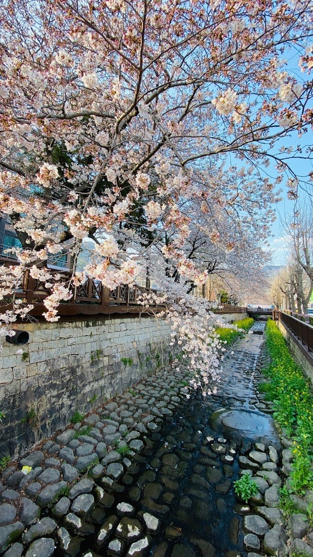 여좌동의 벚꽃을 잊지 못하는 마음에 여좌동을 가보니 변하기도 많이 변했다. 양쪽으로 뻗어 있던 벚꽃이 한쪽은 사라지고 없었고, 물길 아래는 돌로 치장을 하고 있었는데 그나마 유채꽃이 심겨 있어서 삭막하지 않은 배경이었다.