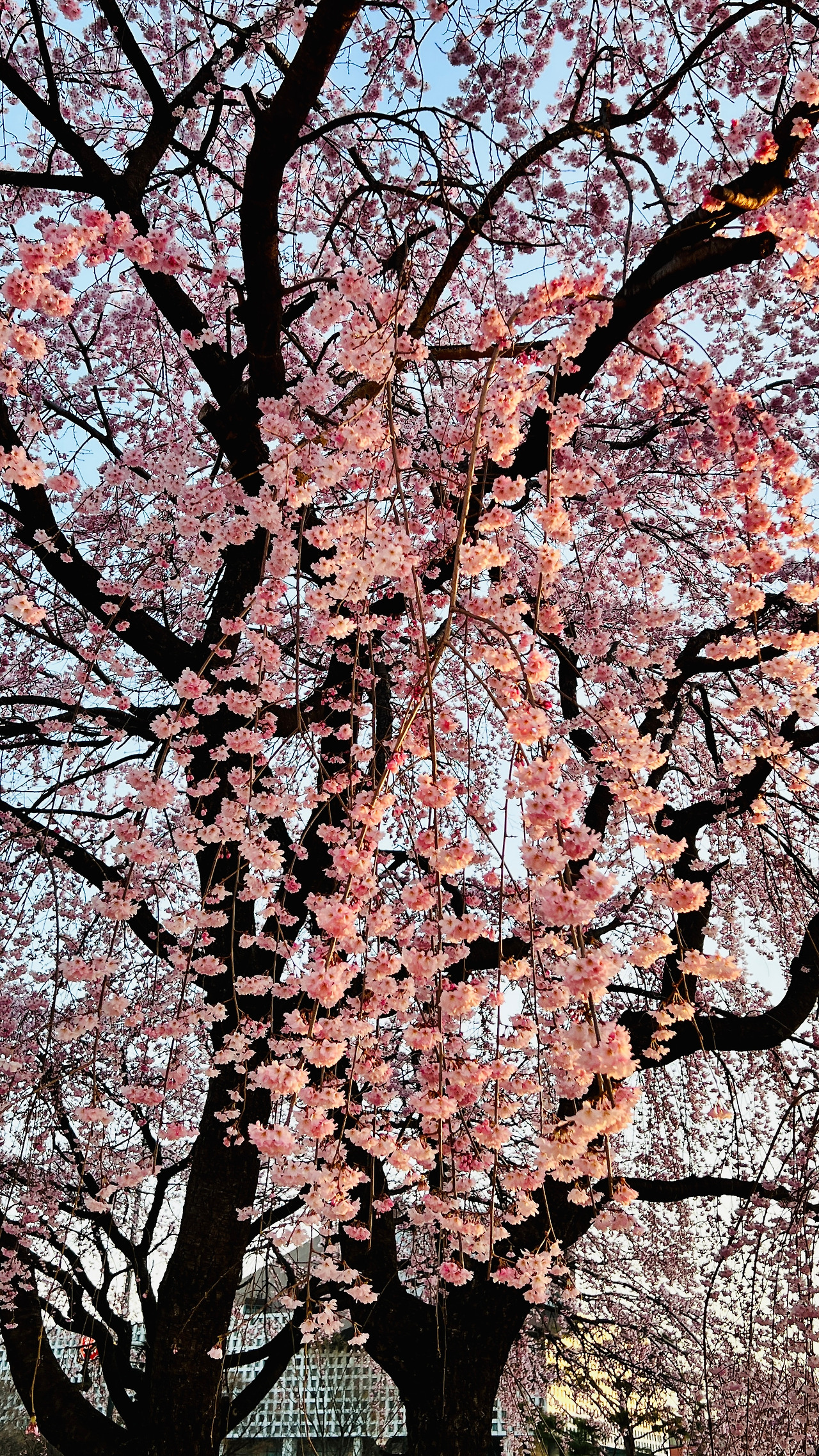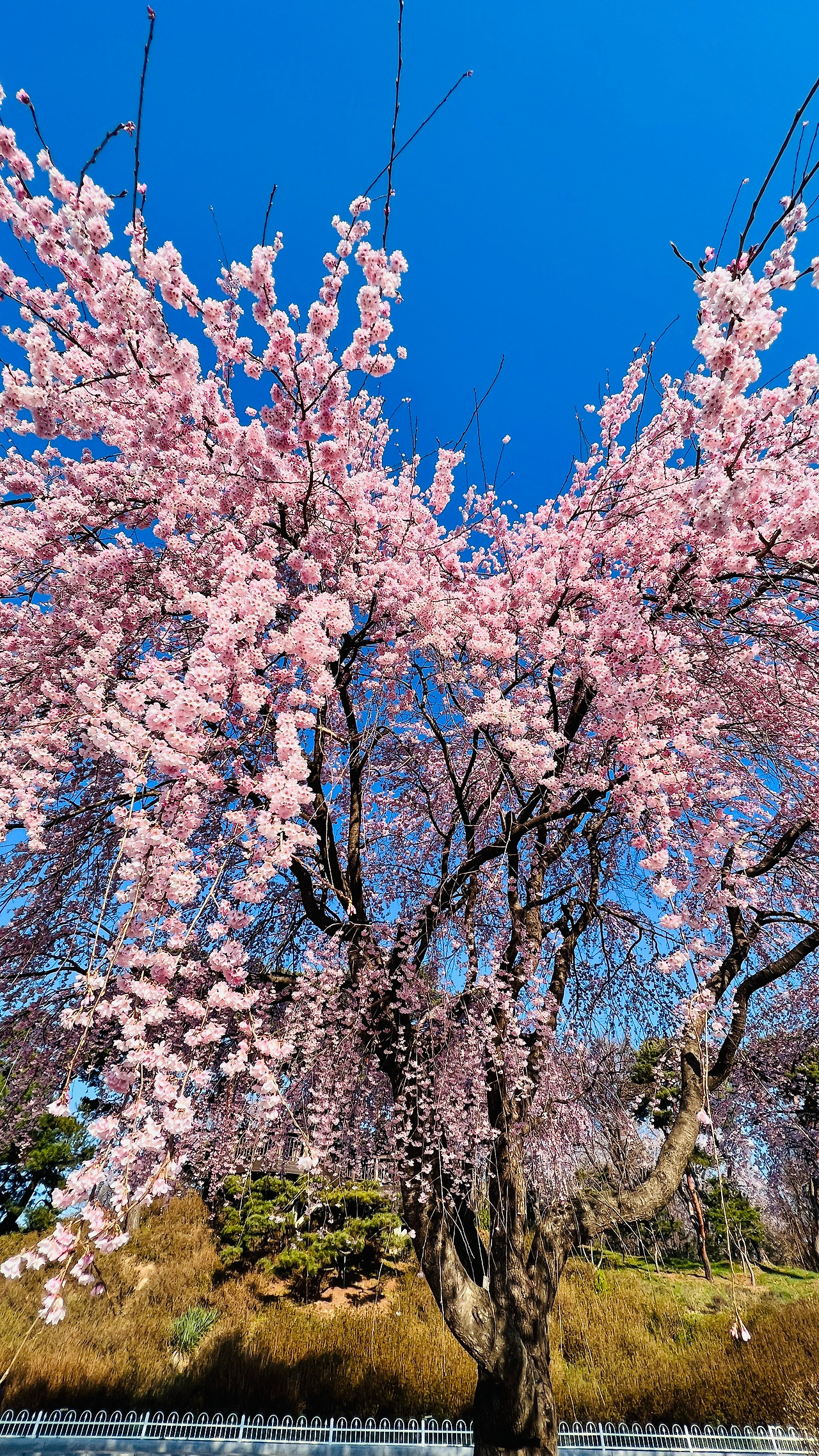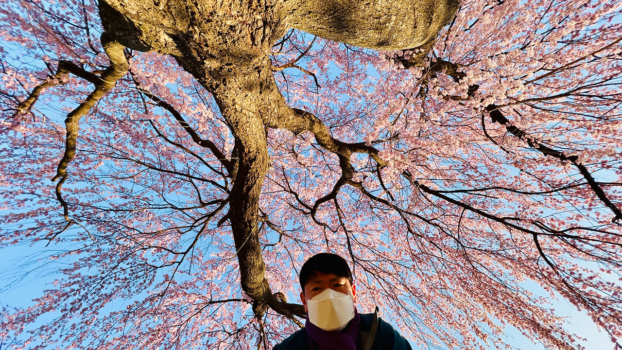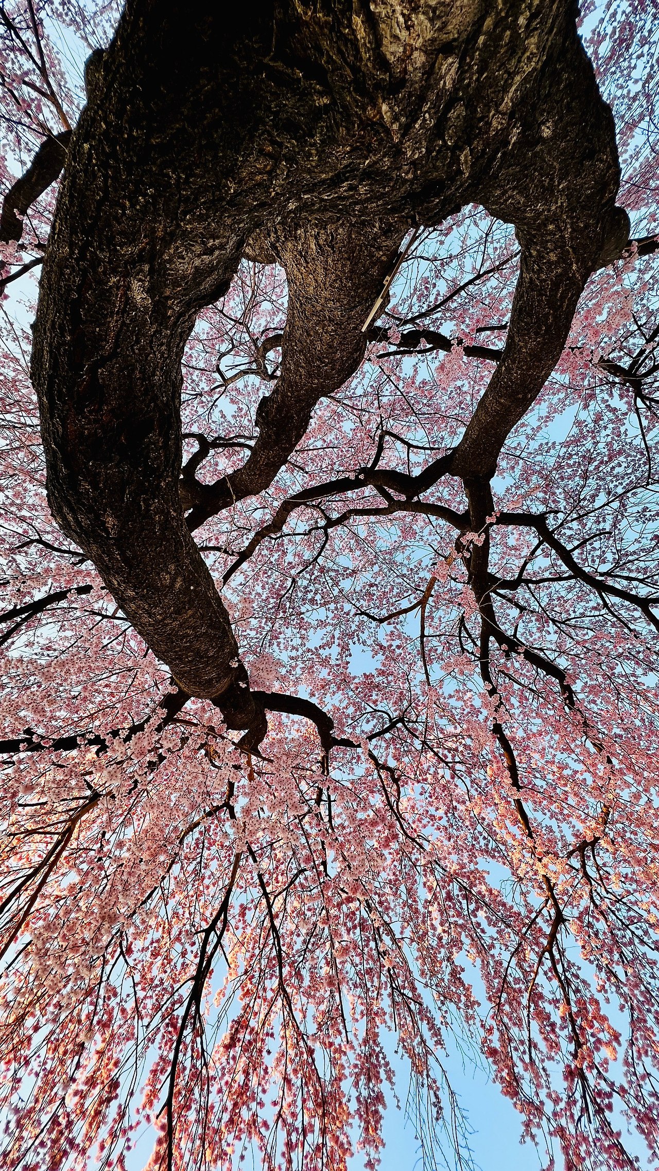 능수 벚꽃, 수양벚꽃은 수양버들처럼 늘어져 있다. 고고하게 많이 흔들리지 않는 일반 벚꽃에 비하면 능수벚꽃은 한들한들 가녀린 몸짓으로 미세한 바람에도 몸부림을 친다. 그 자태를 한참을 바라보고 있노라면 그들을 설득하기가 쉽지 않다. 연못 옆에 서 있는 두 나무는 가장 볕이 좋은 곳이며 연령이 오래되어 보인다. 그 겨울들의 추위에도 여름들의 태풍에도 당당하게 살아온 세월을 연분홍 꽃으로 보여준다.