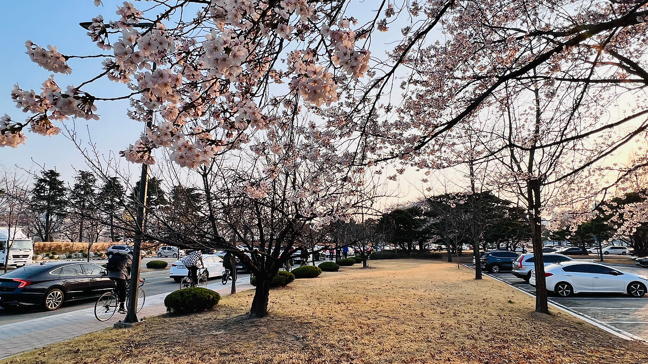 E1 카이스트 정문을 나오면 갑천변을 내려가는 길이 나온다. 갑천을 내려와서 바라본 둔치에 벚꽃들이 즐비해있다. 시간이 되면 간이 접이 의자를 한 개 가져와서 꽃들을 바라보고 귀에 좋은 음악을 틀고 좋으로 적힌 시들을 읽으면 좋겠다.