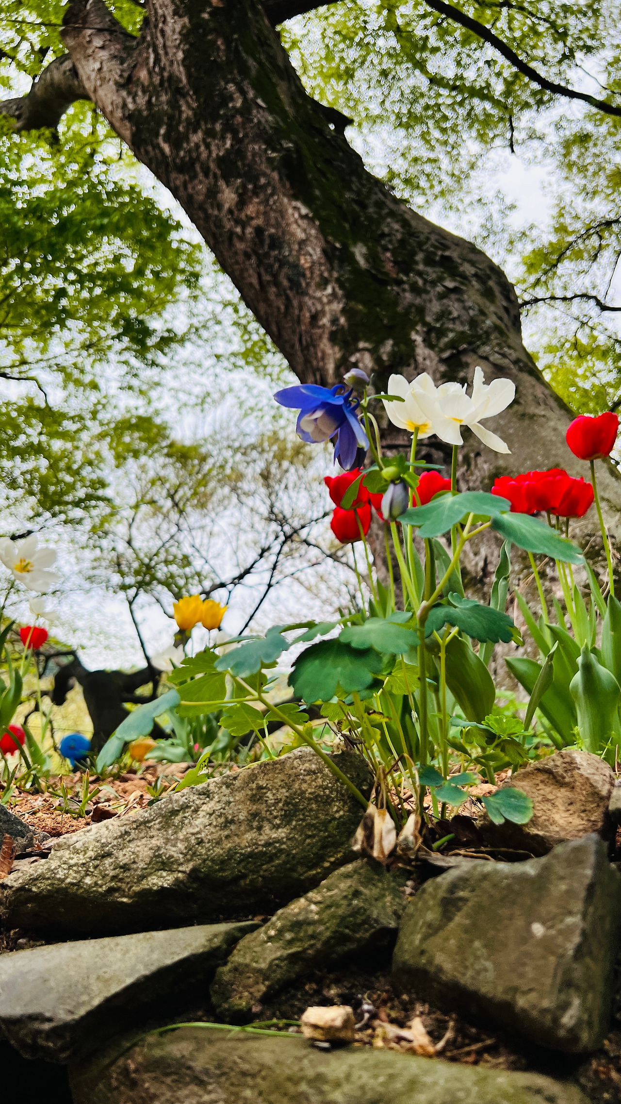 공양간 옆에 있었던 느티나무 무에 누군가가 심은 튤립과 매발톱나무의 꽃이 펴 있었다. 대웅전에 가족 등을 한 개 달고 보살님에게 공양을 부탁드렸더니 11시가 넘어서 오시라 하신다. 거리두기로 많이 오시게 할 수 없지만...