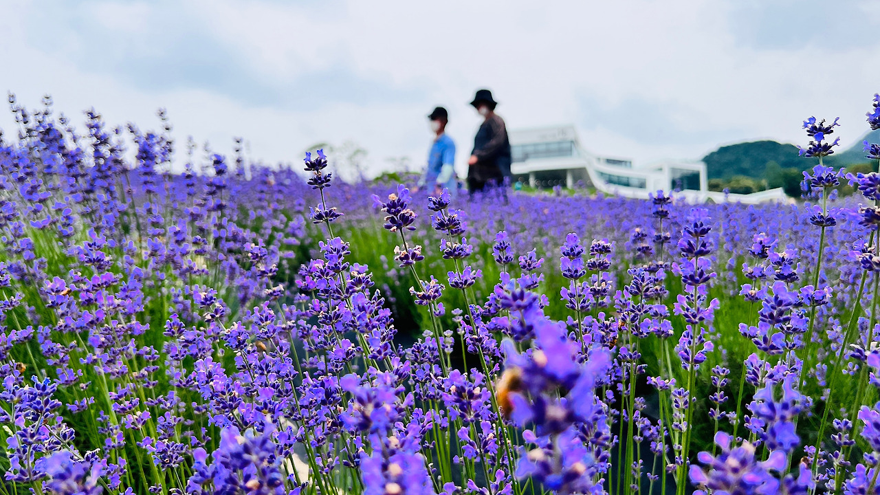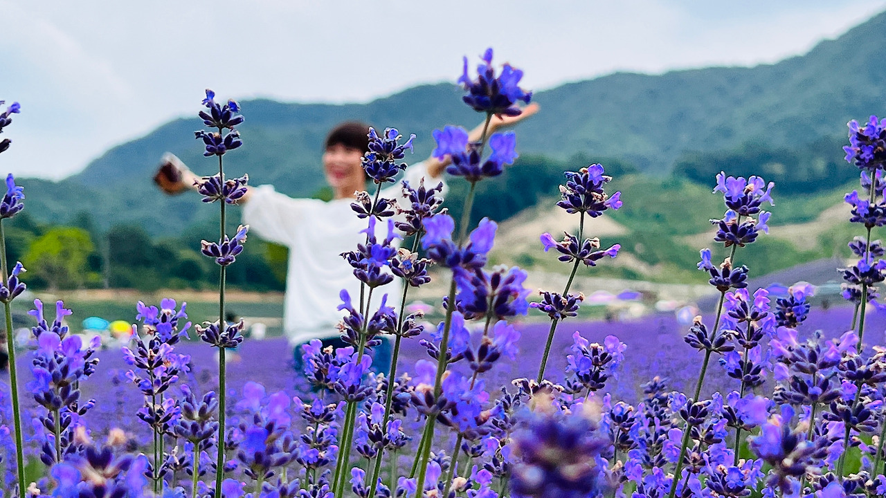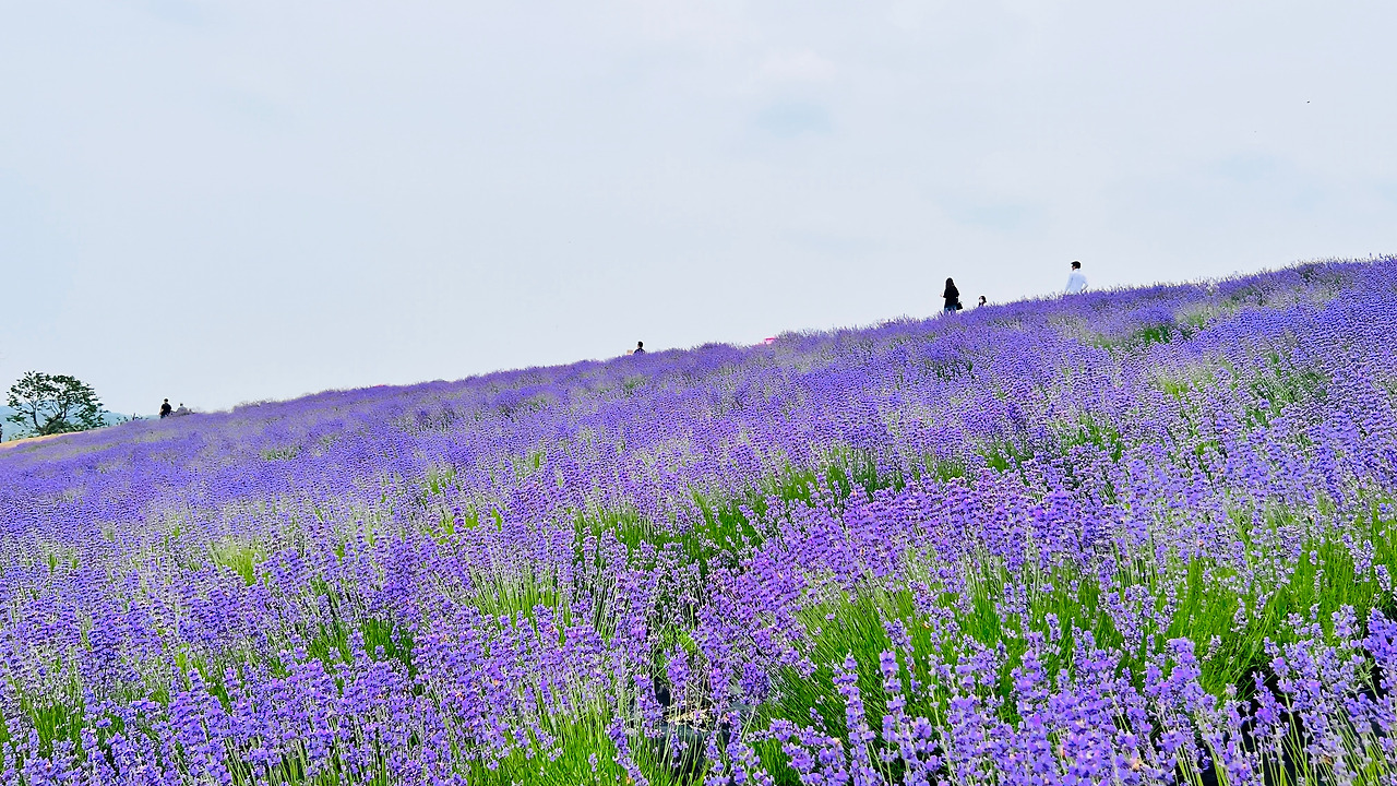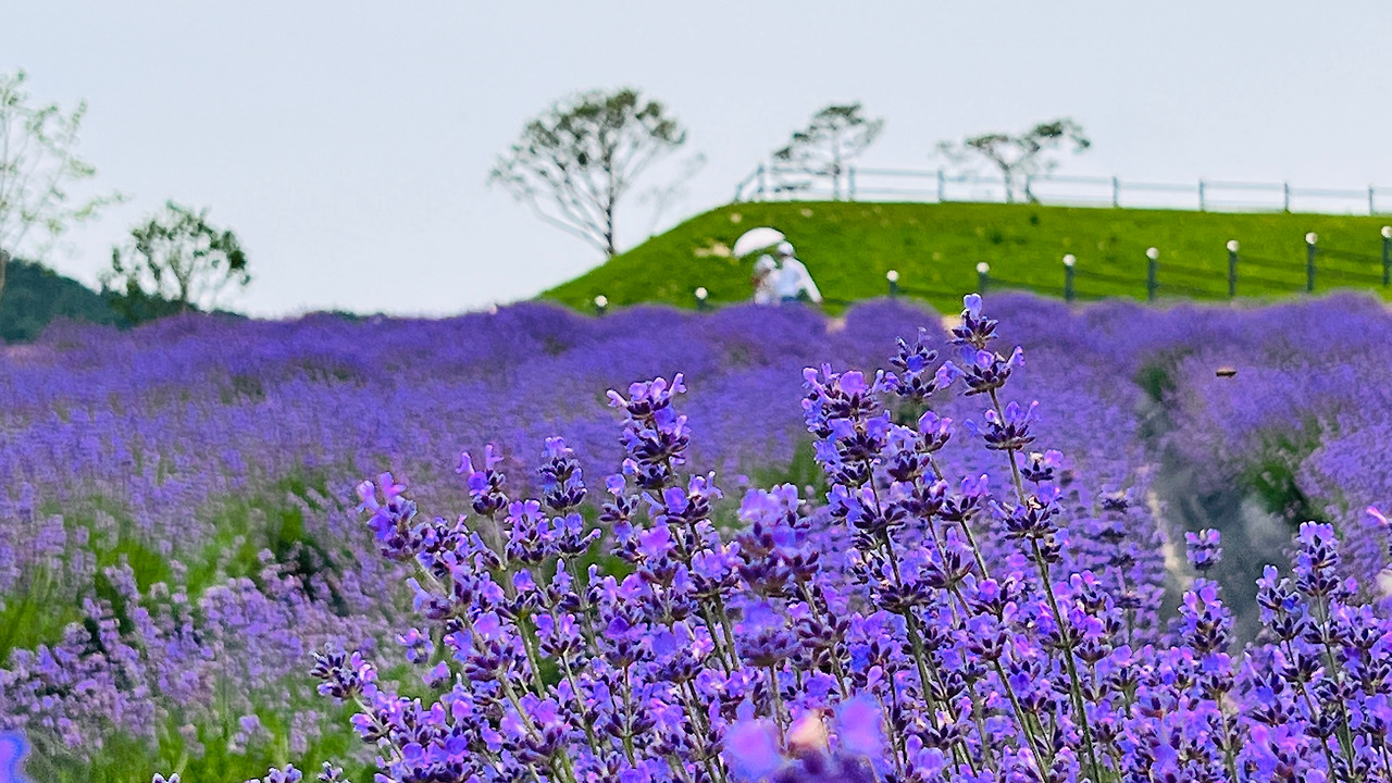 오른쪽 아래를 건너면 메인 라벤더밭이 나온다. 지금이 그쪽 밭은 절정이다. 밭에 들어가서 촬영이나 포즈를 취할 수는 있지만 길이 편안하지 않아서 골과 골 사이를 넘다들거나 밭 끝까지 걸어가기에는 편안한 차림이 좋을 듯하다.