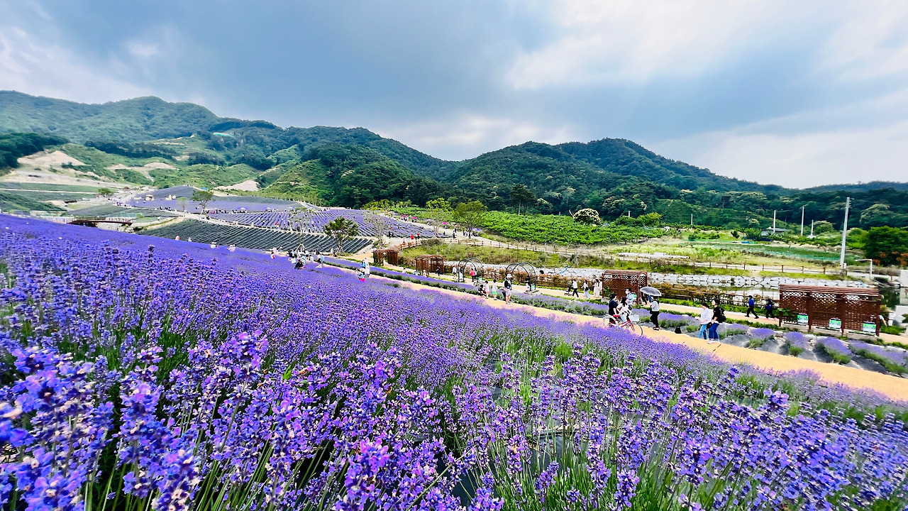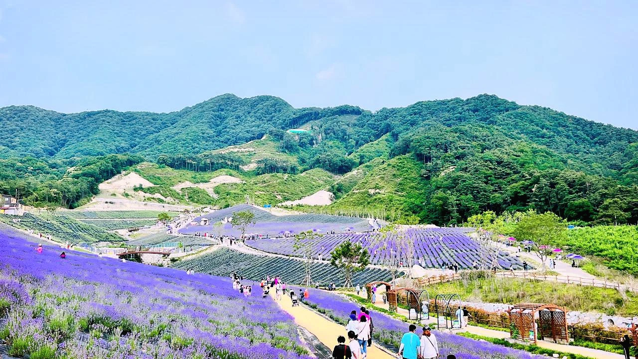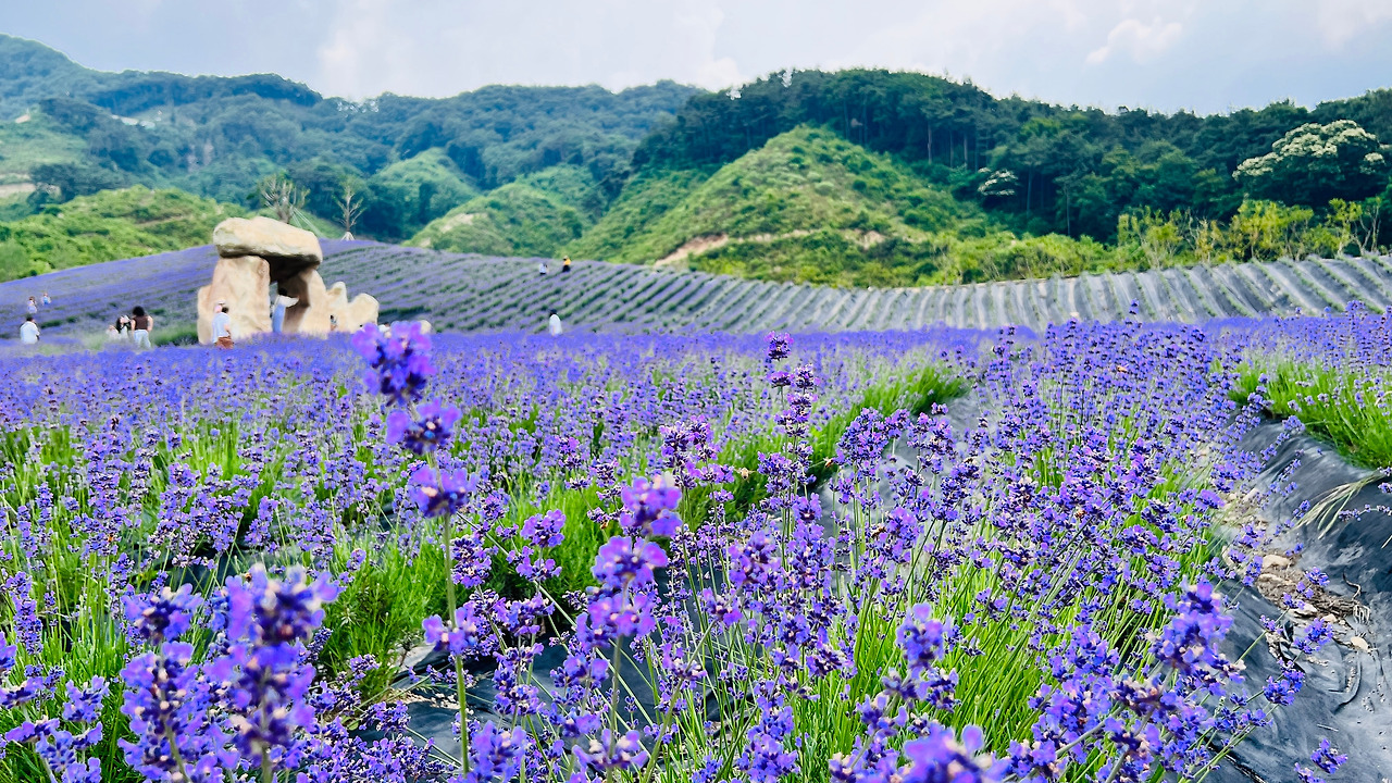 전국 정읍시 구룡동 칠보산 자락 33만㎡ 규모의 허브원에는 40만주의 라벤더와 4만주의 라만딘이 가득 채우고 있다. 이는 국내 최대 규모라고 한다. 라벤더의 본고장 프랑스의 프로방스 그라스와 홋카이도의 도미팜을 섞어 놓은 정읍의 '허브원'은 라벤더가 만개다. 홋카이도의 아름다운 라벤더를 보고 싶어 언젠가 가보고 싶다는 꿈을 꾸었는데 국내에도 라벤더를 이렇게 실컷 원 없이 구경하고 향기를 맡을 수 있었다. 길을 나서면 T-map에 지금 같은 곳을 가고 있는 차량의 대수가 나온다. 사람들의 생각은 나와 다르지 않다. 지금이 라벤더의 계절이다. 가장 더울 때를 찾아서 피어난다. 국내 주요 라벤더 농원은 거제의 지세포성, 고창 청농원, 6월 말경 포천의 허브 아일랜드, 강원도 고성의 하늬 라벤더팜 등이 있다.