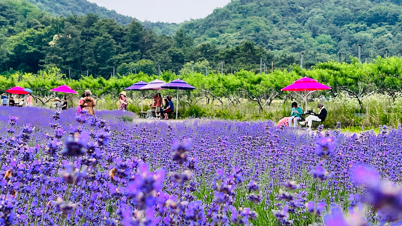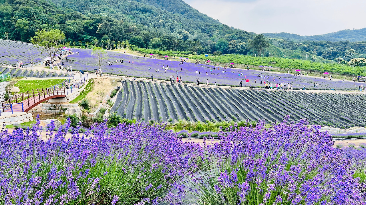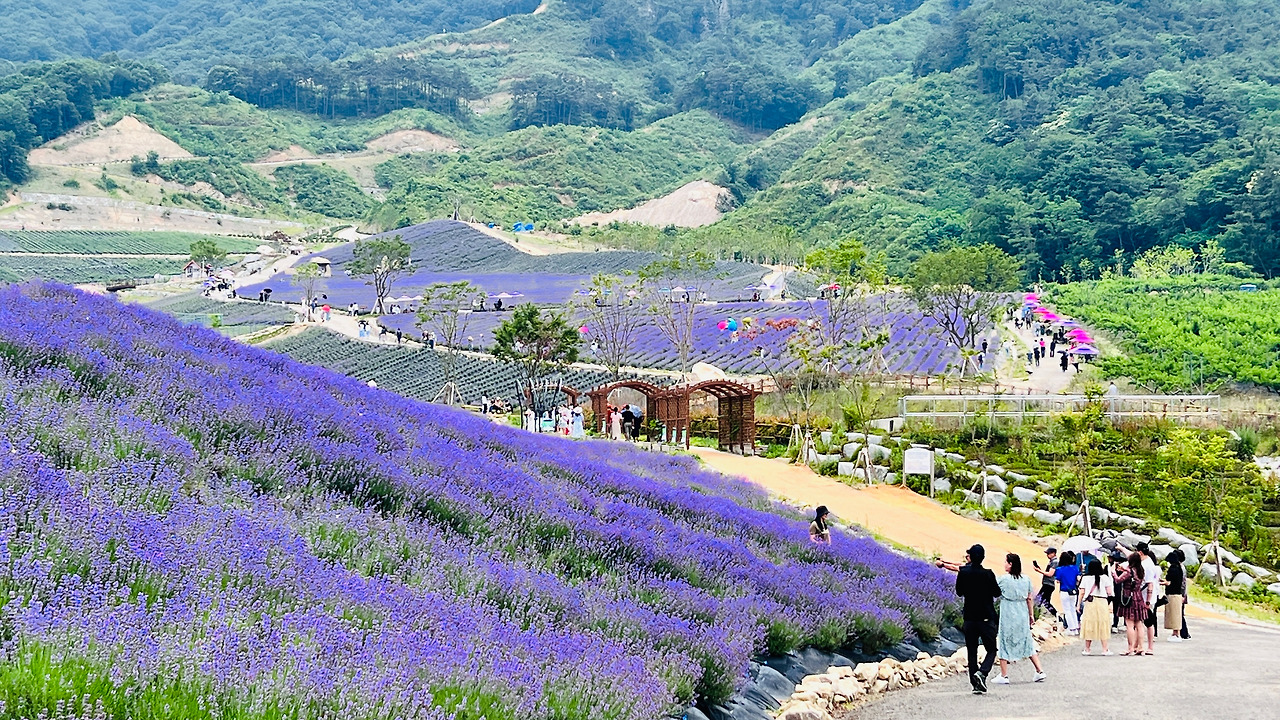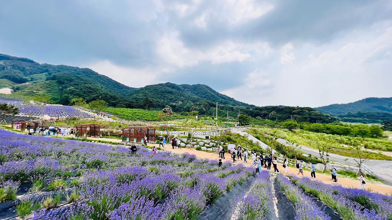 전국 정읍시 구룡동 칠보산 자락 33만㎡ 규모의 허브원에는 40만주의 라벤더와 4만주의 라만딘이 가득 채우고 있다. 이는 국내 최대 규모라고 한다. 라벤더의 본고장 프랑스의 프로방스 그라스와 홋카이도의 도미팜을 섞어 놓은 정읍의 '허브원'은 라벤더가 만개다. 홋카이도의 아름다운 라벤더를 보고 싶어 언젠가 가보고 싶다는 꿈을 꾸었는데 국내에도 라벤더를 이렇게 실컷 원 없이 구경하고 향기를 맡을 수 있었다. 길을 나서면 T-map에 지금 같은 곳을 가고 있는 차량의 대수가 나온다. 사람들의 생각은 나와 다르지 않다. 지금이 라벤더의 계절이다. 가장 더울 때를 찾아서 피어난다. 국내 주요 라벤더 농원은 거제의 지세포성, 고창 청농원, 6월 말경 포천의 허브 아일랜드, 강원도 고성의 하늬 라벤더팜 등이 있다.