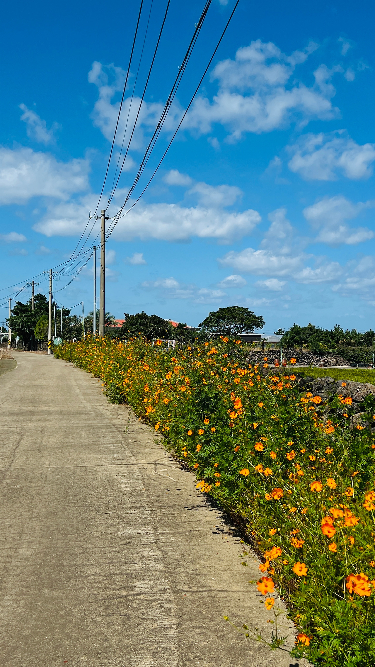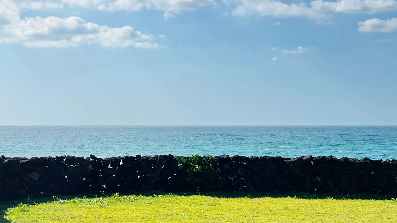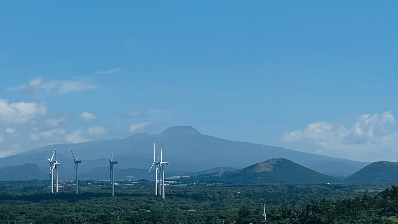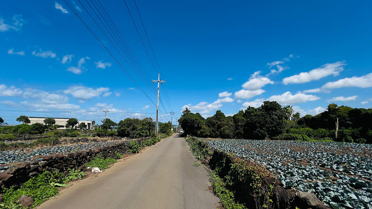 오른쪽으로 한라산이 보인다. 오름들과 함께 풍차도 보이고 관광객들이 전혀 여기를 온 적이 없는 듯한 마을의 제주 골목길을 걷는다. 아직 스레트지붕에 페인트를 칠한 지붕이 담장 너머로 보인다. 제주의 돌들은 무심하게 많은 시간과 세월을 그렇게 보냈으리라.