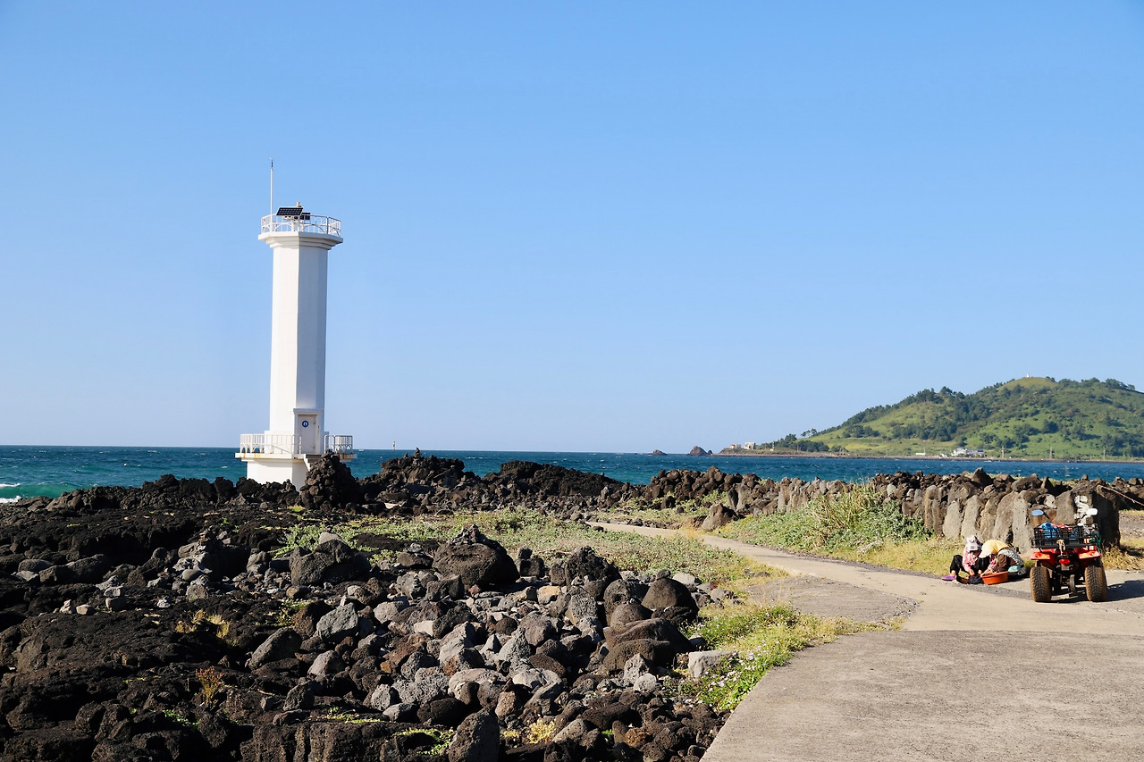 금능마을로 들어서는 바닷길 등대아래 삼촌이 미역인가? 톳인가? 무엇인가를 갈무리하고 있다.