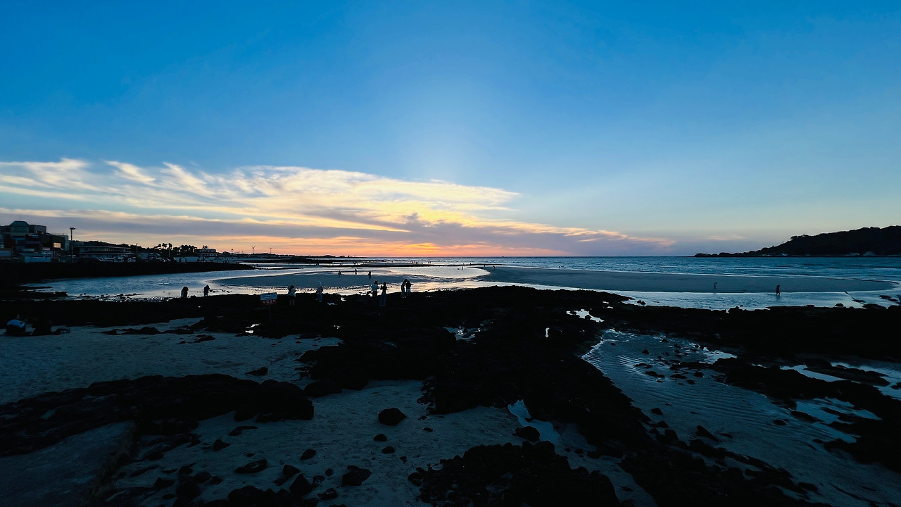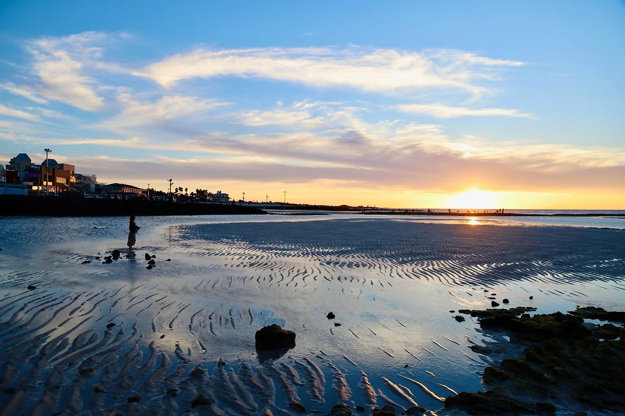 협재해수욕장은 중간에 틔어 나온 바위에 사람이 있을 때 그것을 반영으로 해서 저녁 해거름을 찍으면 작품 사진들을 많이 건져 낼 수 있다. 다만 해 지는 시간을 기다려야 한다. 사진에 관심 없는 가족이나 동행인이 있다면 해가 지는 쪽을 바라보는 식당을 예약해서 제주도 삼겹살에 저녁을 함께 하는 행복도 좋다.
