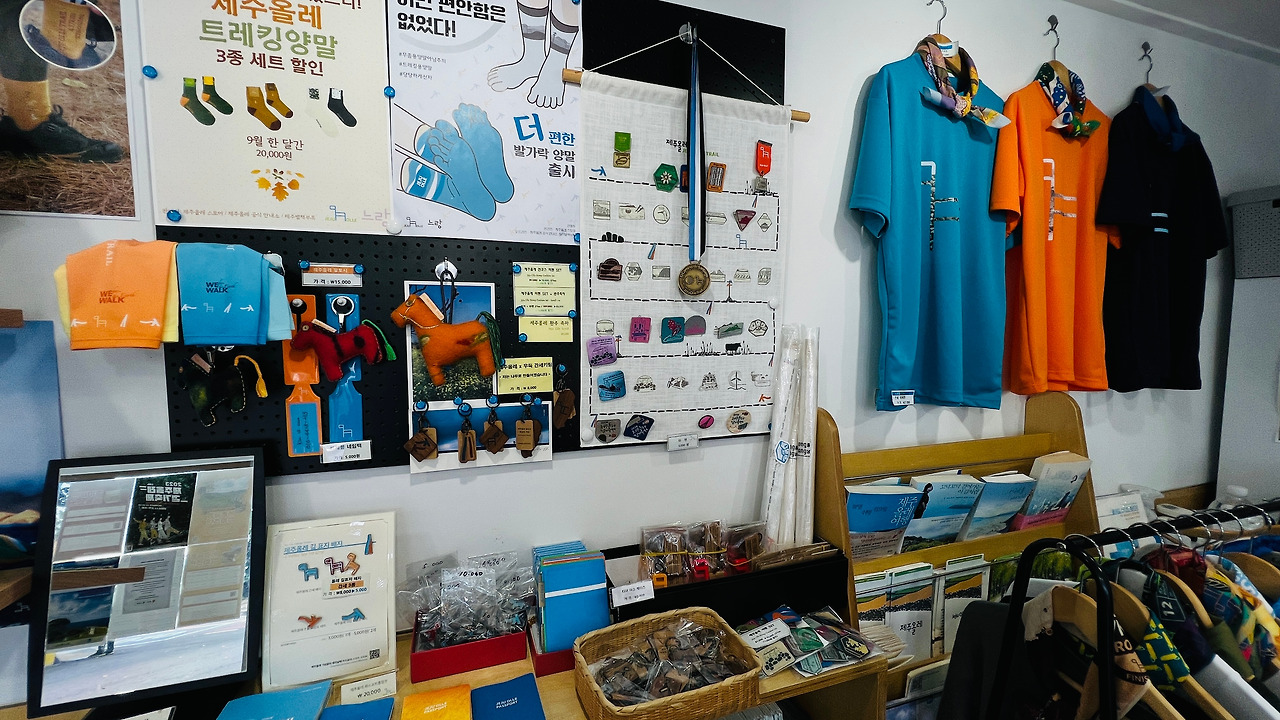 버스에서 내리면 저지예술 정보화 마을에 내린다. 맞은편에 올레안내센터에 있다. 옆에 걸어가던 사람이 배낭에 간세(올레길 말 모양 올레 상징)를 가방에 매달고 다니는 것을 보니 마음이 동한 것도 있고 자원봉사자들이 한땀 한땀 손으로 직접 만든 인형을 구입하기로 결심하고 가게에 들어섰다. 파랑은 제주, 주황은 규슈올레를 상징한다. 몽고올레는 노란색이다. 인형들이 수제로 만들어져 가격이 다소 비싼 감은 있지만 세상에서 하나뿐이라는 아이템에 만족을 한다. 화장실은 지지마을 사무소 뒤편에 화장실을 사용해야 한다. 저지마을은 전형적인 제주의 오름에 위치한 곳이다.