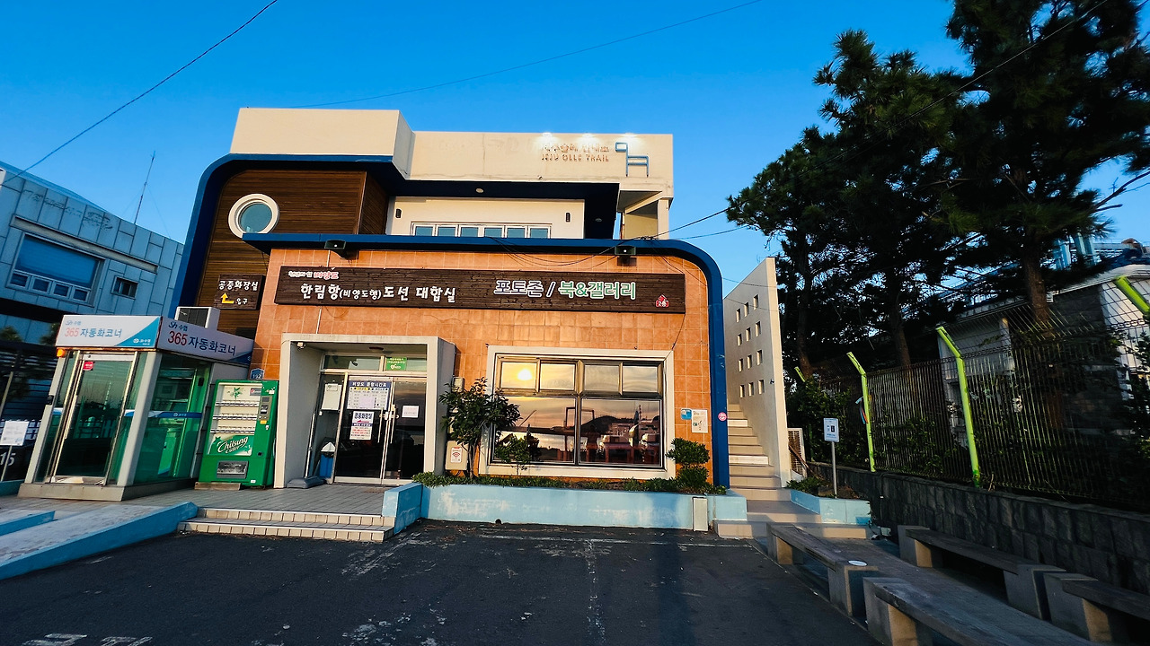 올레 14코스 종점 한림항 도선 대합실이다.