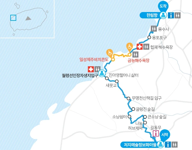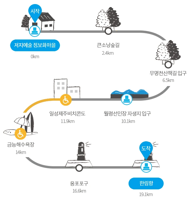 제주 오름에서 해안으로 내려가는 길이며, 오르막이 없이 내리막으로 가는 길이라 비교적 쉬운 코스 중 하나이다. 다만 19.1km이며, 6~7시간이 소요되는 비교적 긴 코스이다.