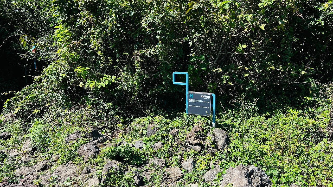 굴렁진 숲길로 움푹 파인 지형을 제주어로 굴렁지라고 하는데, 제주올레에서 개척한 이 굴곡이 있는 숲길이라 해서 굴렁진 숲길로 이름 지었다고 쓰여 있습니다. 개척이라는 말이 경이롭게 느껴집니다. 새삼 올레 길은 만들 이들의 노고에 감사를 표합니다.