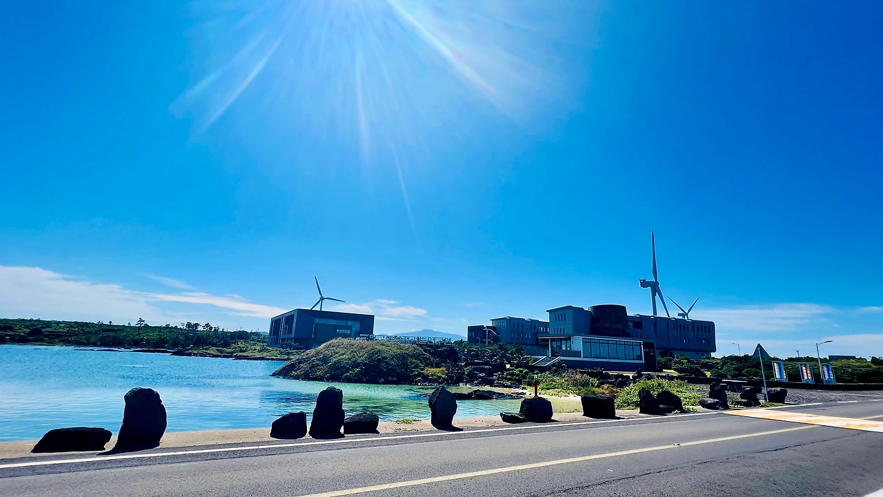 월정리에는 특이하게 풍력발전기가 많이 있다. 여기에 우리나라의 특이한 연구원이 있다. 바로 한국에너지기술연구원이다. 코발트블루의 바닷가에 찻집에다가 풍차까지 풍경을 살려준다. 물론 멀리서 보면 바람개비같이 보이고 돌아 가지만 실제 가까이 가면 그 위용이 압도당하기도 하고 웅웅 거리는 소리에 그 날개가 나를 덮치지 않을까 벗어나고 싶어 생각이 든다. 하지만 그 날개 아래로 다시 거인 같은 날개 그림자가 나를 뒤덮는다. 그렇게 되면 그 자리를 빨리 벗어나고 싶어서 발길을 재촉하게 된다.