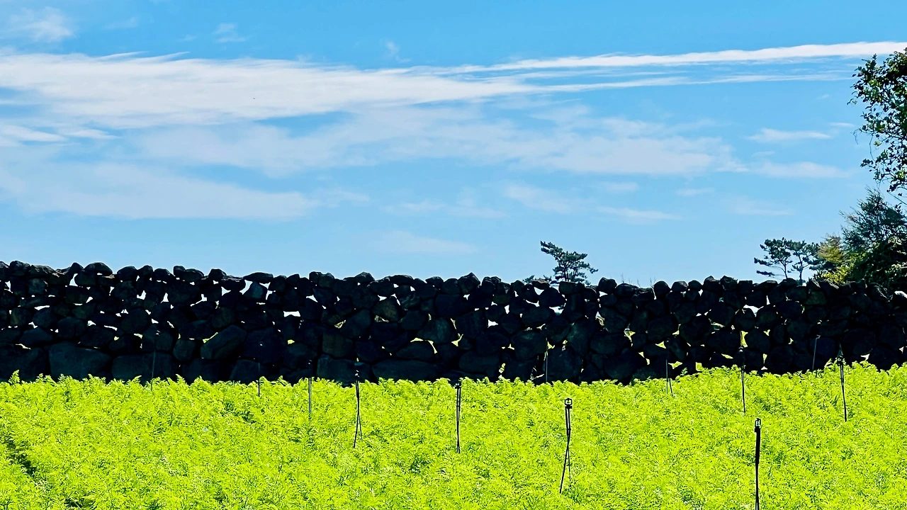 올레 20코스는 구좌읍 쪽 당근으로 유명하다. 김녕세기에서 출발하여 세화해변까지 오는 길의 올레길에는 돌담사이로 이제 막 자라기 시작한 당근들이 파릇파릇하다. 씨앗을 뿌린 지 한 달 정도 되었는지 어린싹부터 시작하여 잘 관리되어 뿌리와 줄기를 내리기 시작한 것들이 보인다. 건조하고 물이 잘 빠지는 땅에 수분 공급을 위하여 스프링클러가 열심히 자신의 일을 해 내고 있기도 하고, 어떤 농부는 손수 물통을 1톤 트럭에 싣고 물을 관개로 호수에 물을 뿌리기도 했다. 내년 1월을 정점으로 이 당근들이 우리나라 전역에 공급이 된다. 구좌읍 및 세화 주변에 100% 당근 주스 가게가 눈에 보인다. 맛은 아주 깊고 부드러운 당근맛이다. 한잔에 8천 원 하는 것을 마셔 보았다.